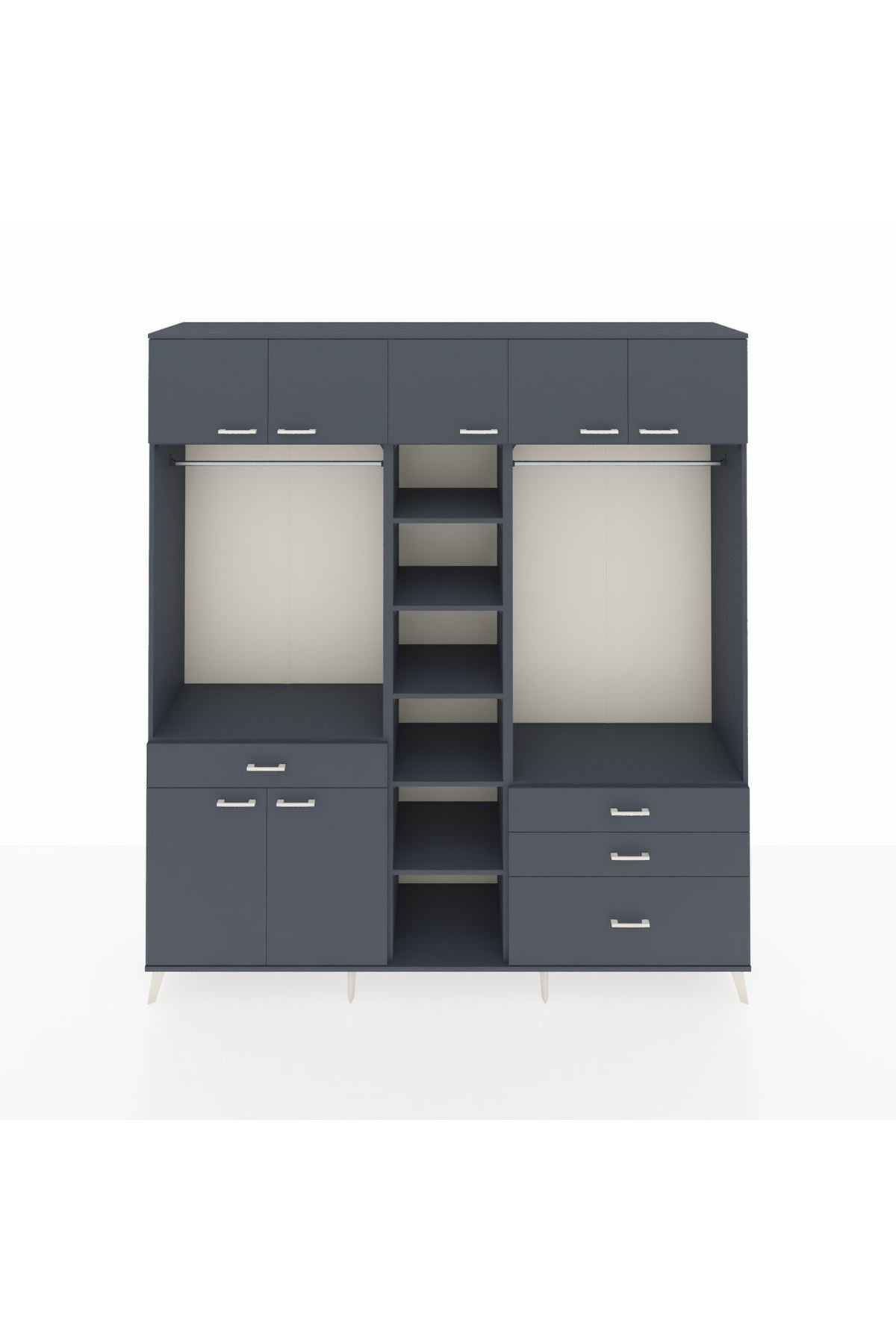 Hyperion Dolap 11 Raflı 4 Çekmeceli 2 Askılı 220x44x243 Antrasit-Antrasit/Antrasit