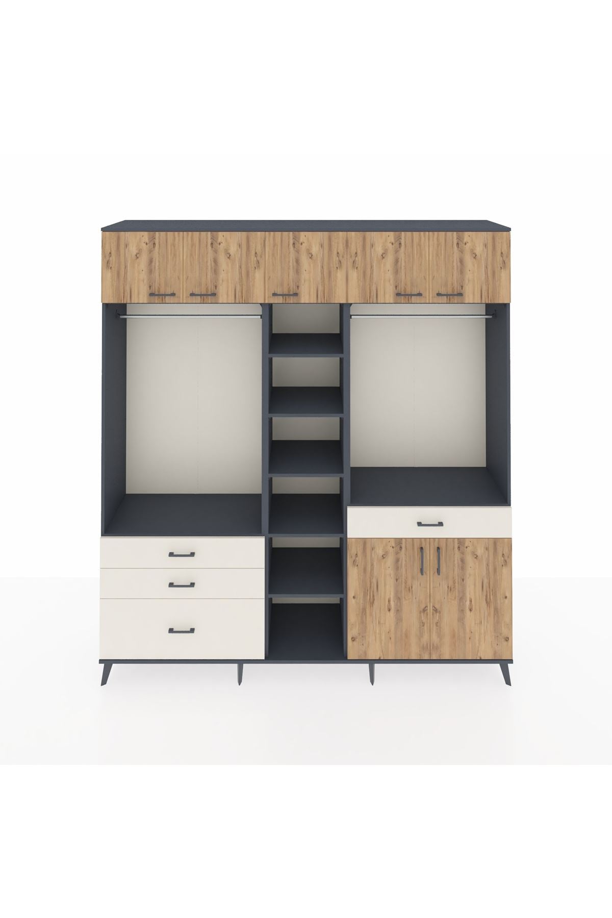 Hyperion Dolap 11 Raflı 4 Çekmeceli 2 Askılı 220x44x243 Antrasit-Çam/Aytaşı