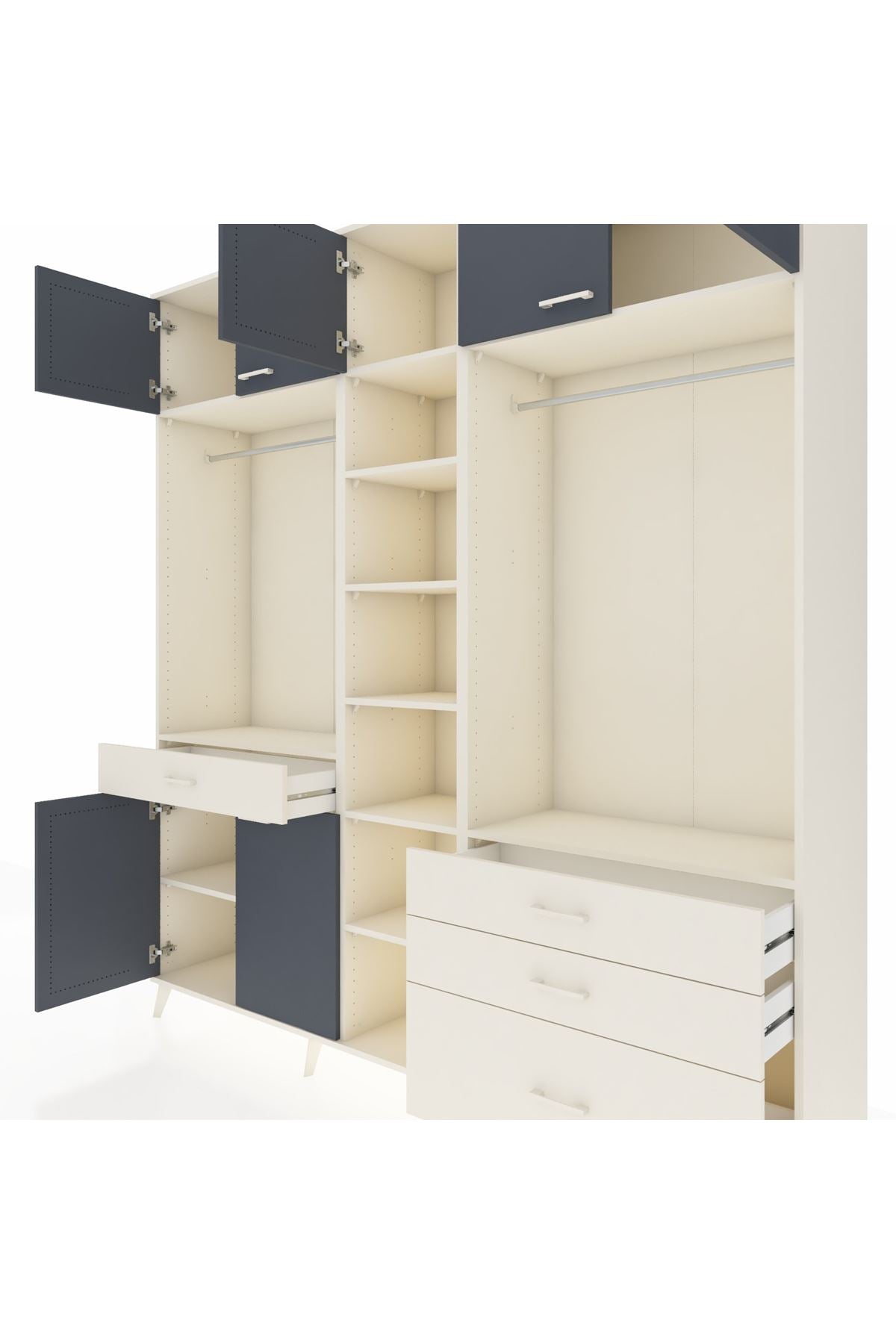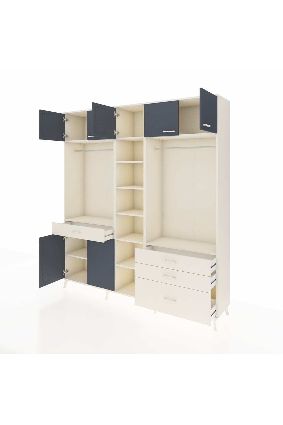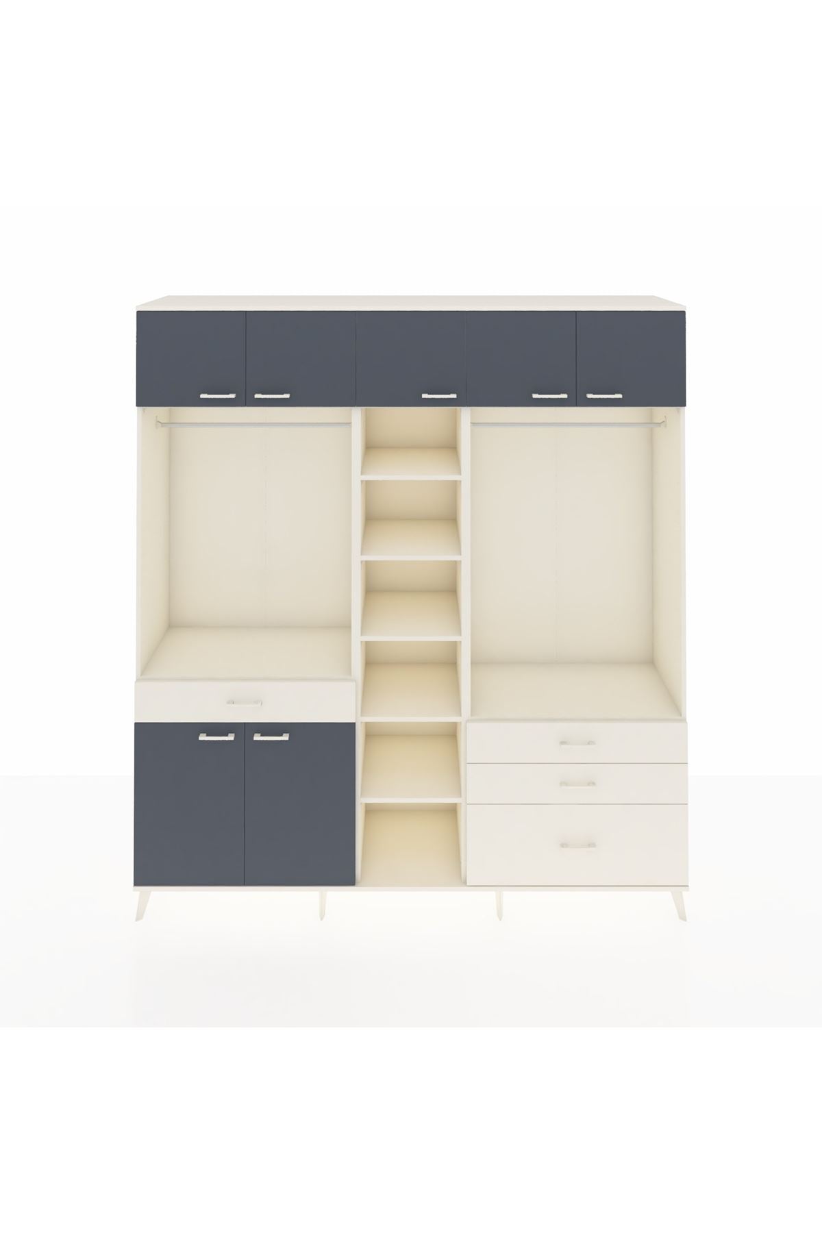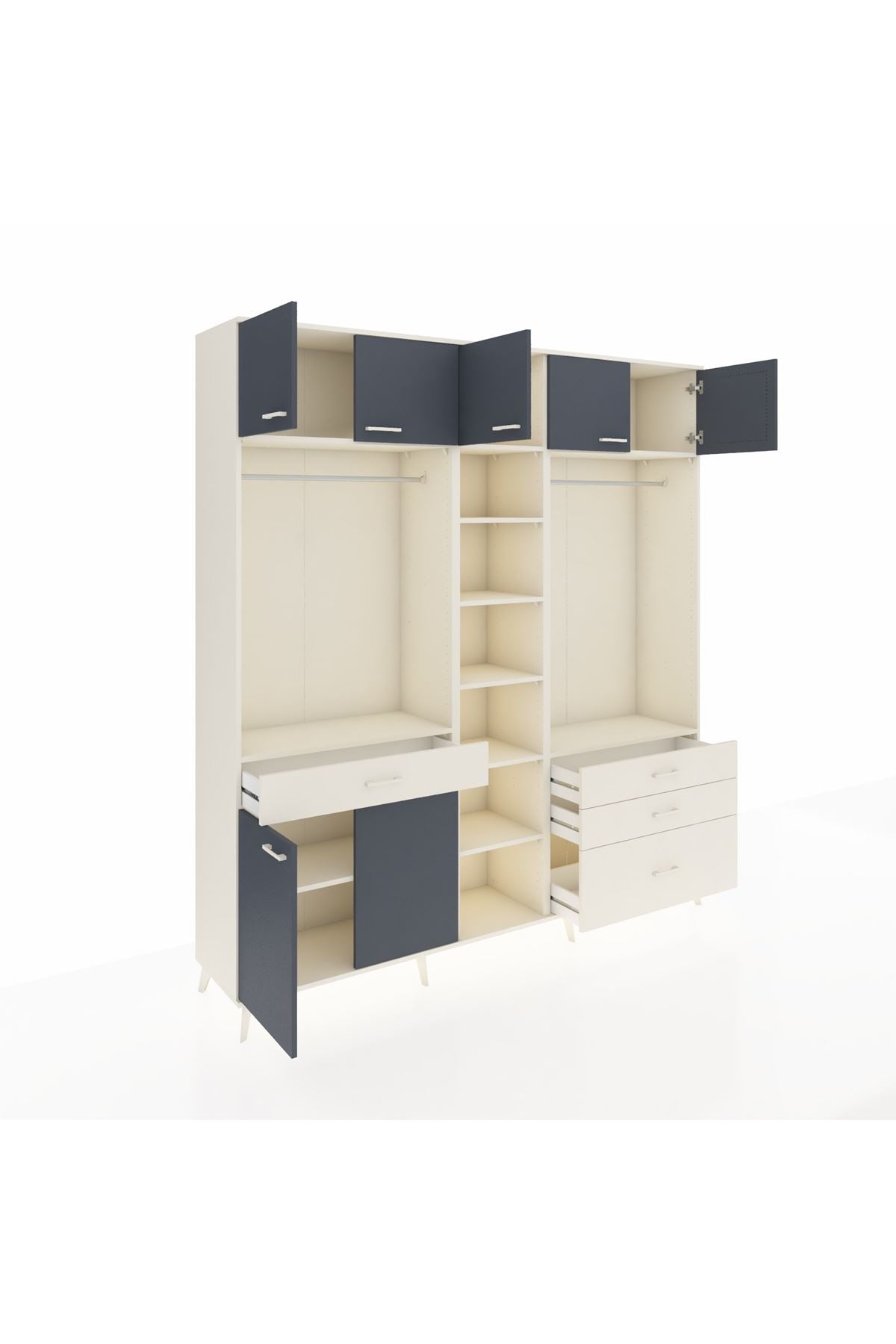 Hyperion Dolap 11 Raflı 4 Çekmeceli 2 Askılı 220x44x243 Aytaşı-Antrasit/Aytaşı