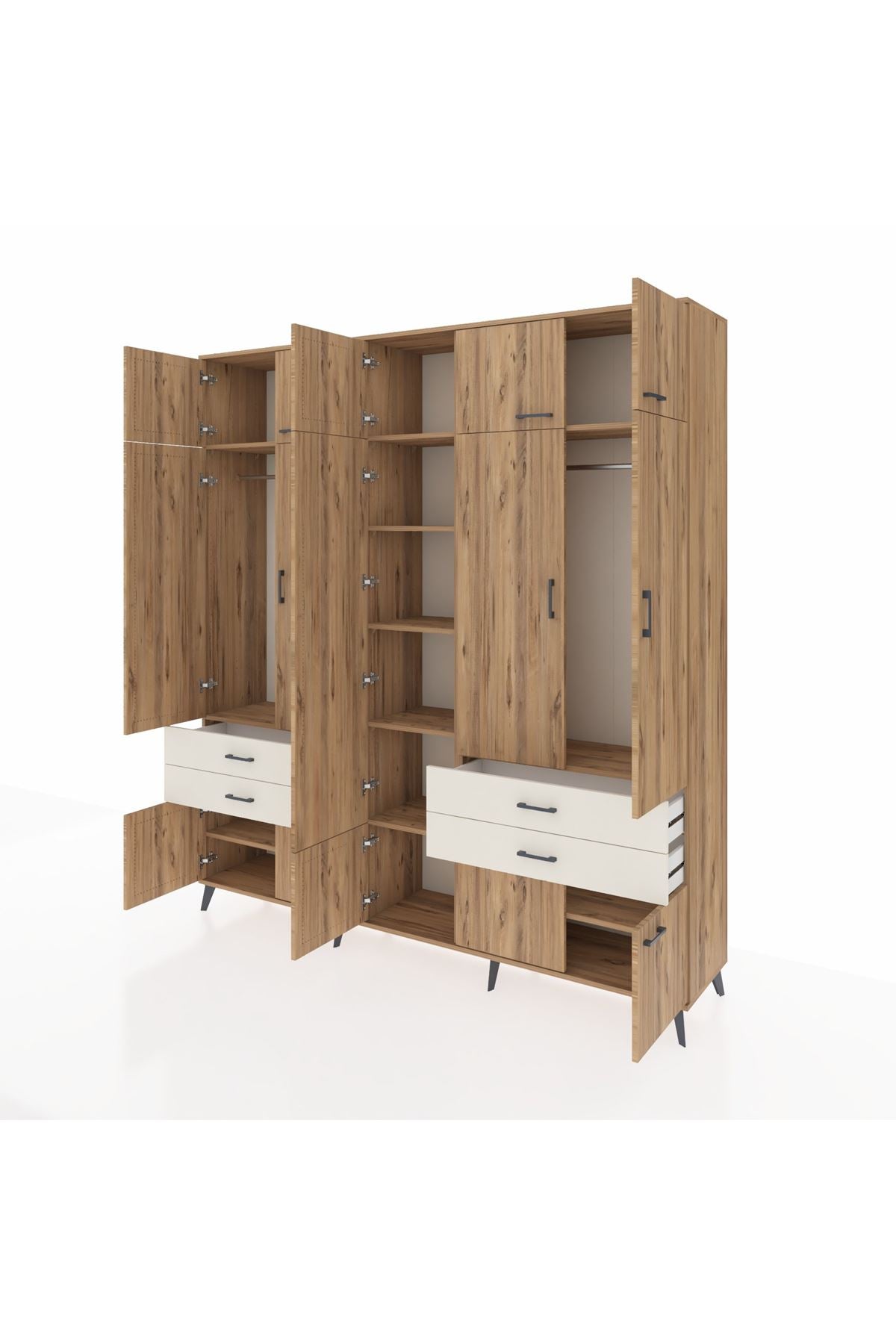 Hyperion Dolap 11 Raflı 4 Çekmeceli 2 Askılı 220x44x243 Çam-Çam/Aytaşı