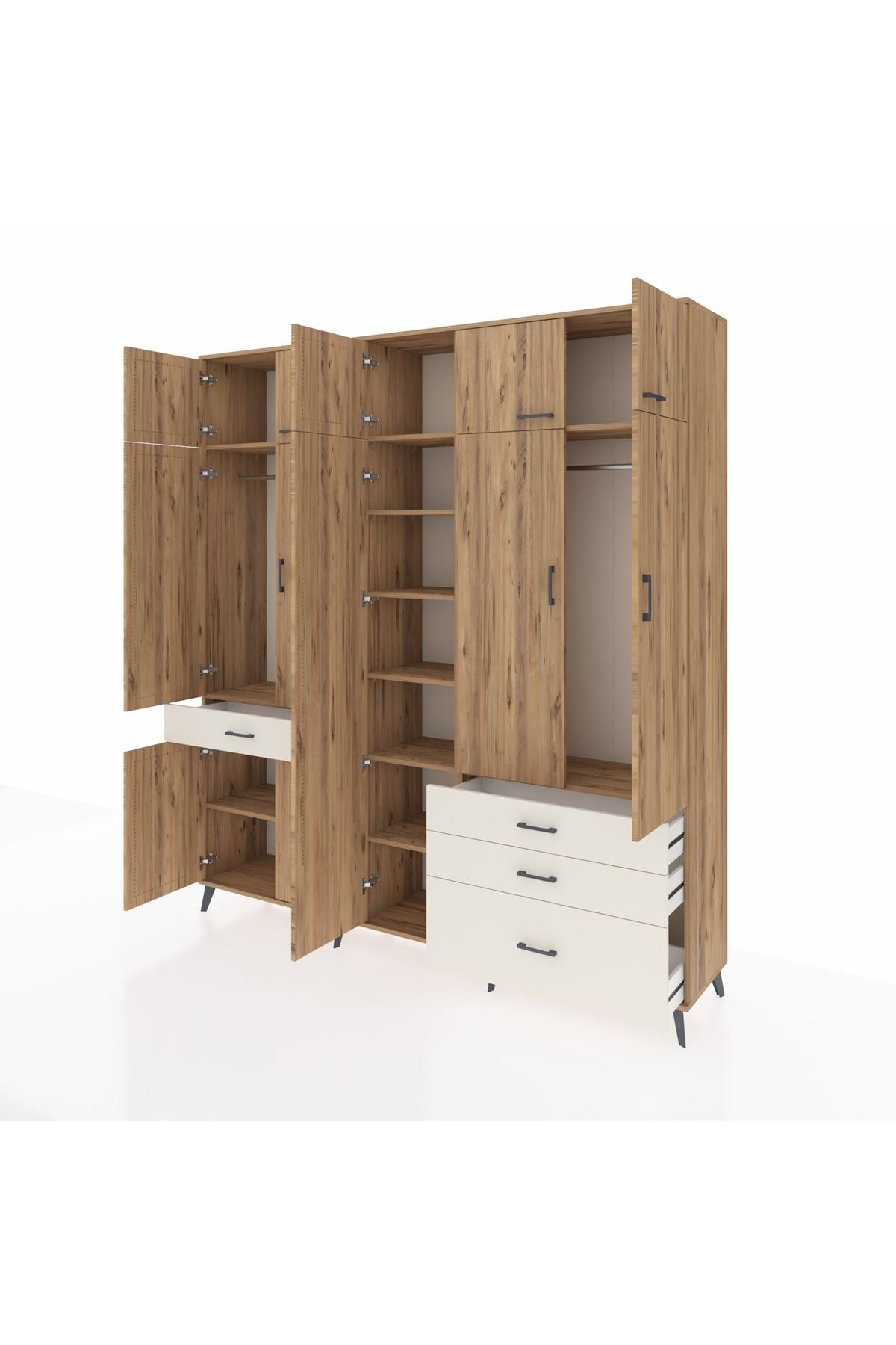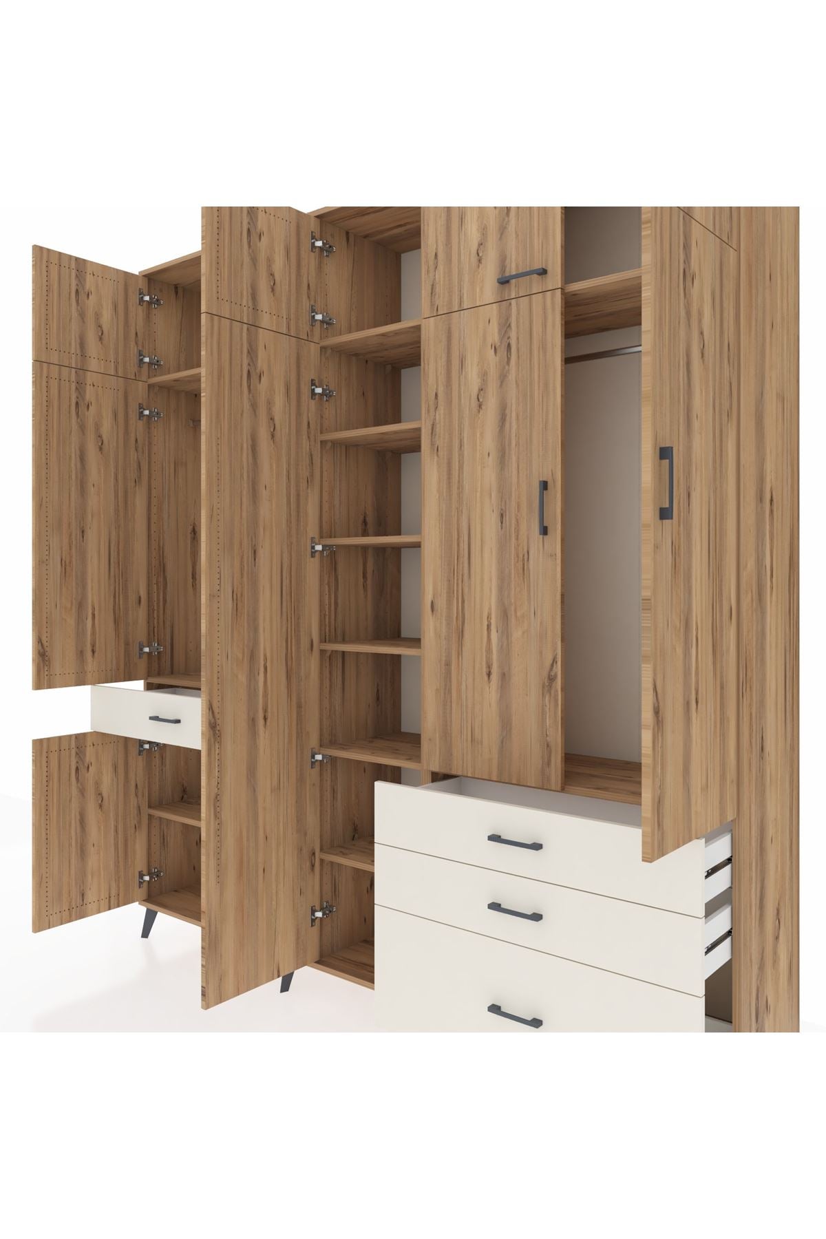 Hyperion Dolap 11 Raflı 4 Çekmeceli 2 Askılı 220x44x243 Çam-Çam/Aytaşı
