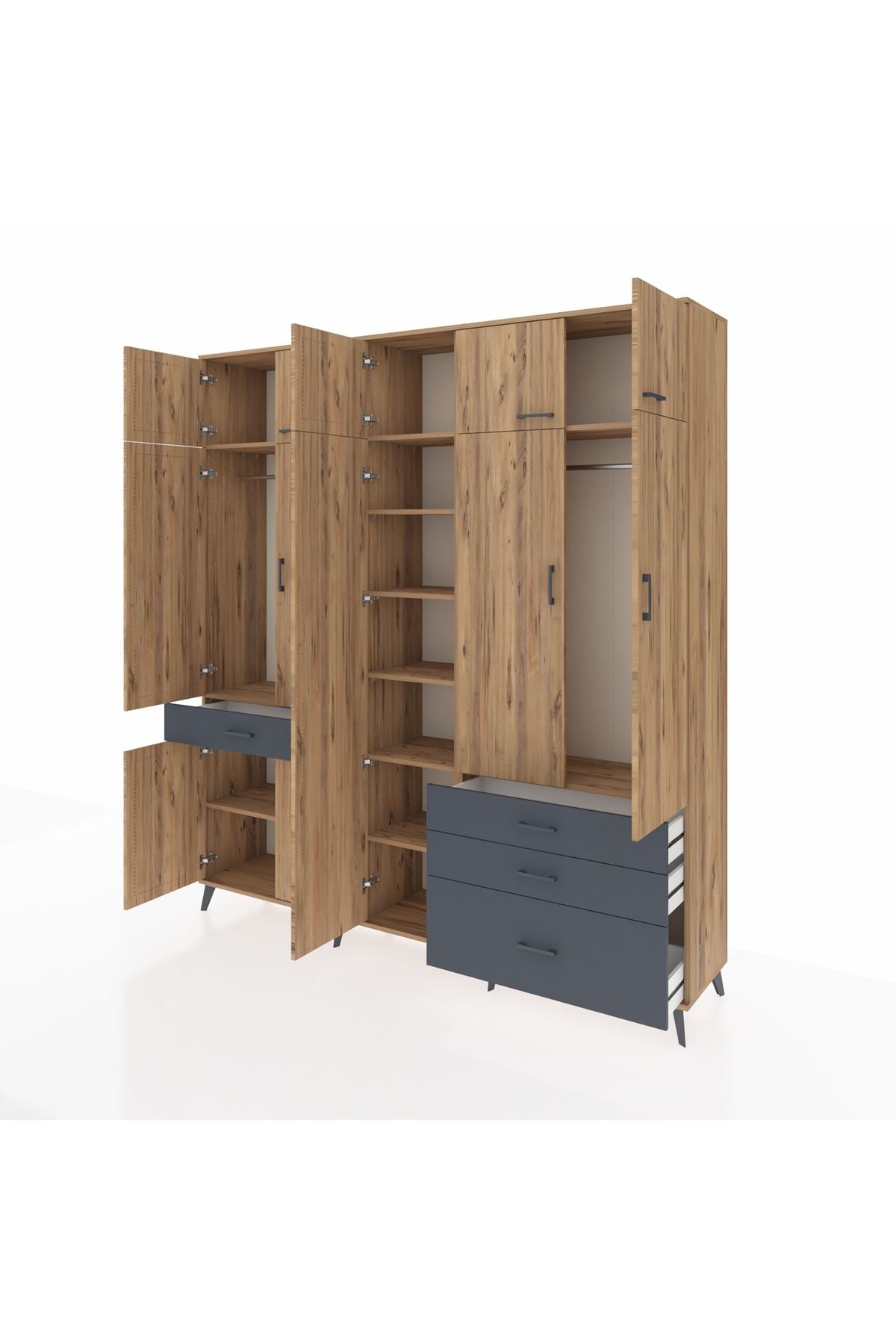 Hyperion Dolap 11 Raflı 4 Çekmeceli 2 Askılı 220x44x243 Çam-Çam/Antrasit