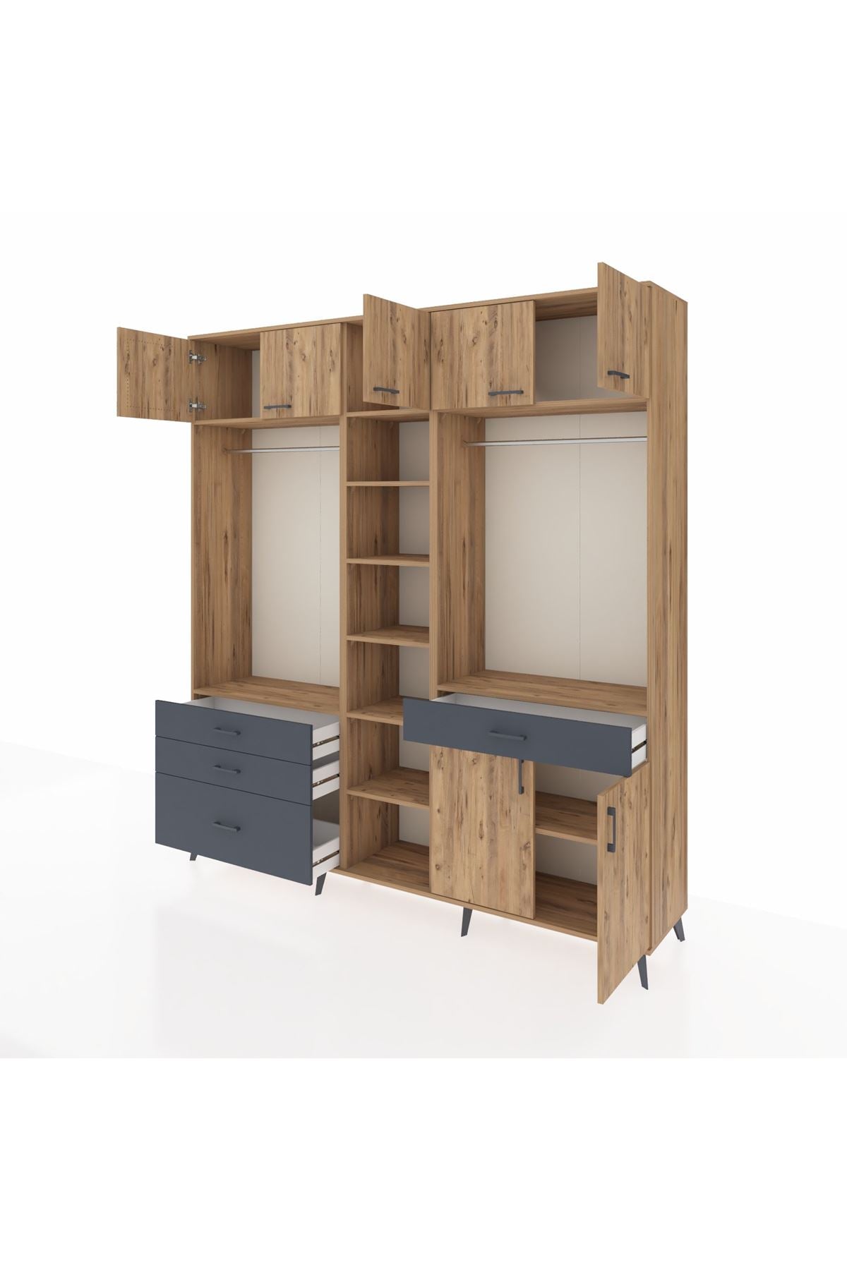 Hyperion Dolap 11 Raflı 4 Çekmeceli 2 Askılı 220x44x243 Çam-Çam/Antrasit