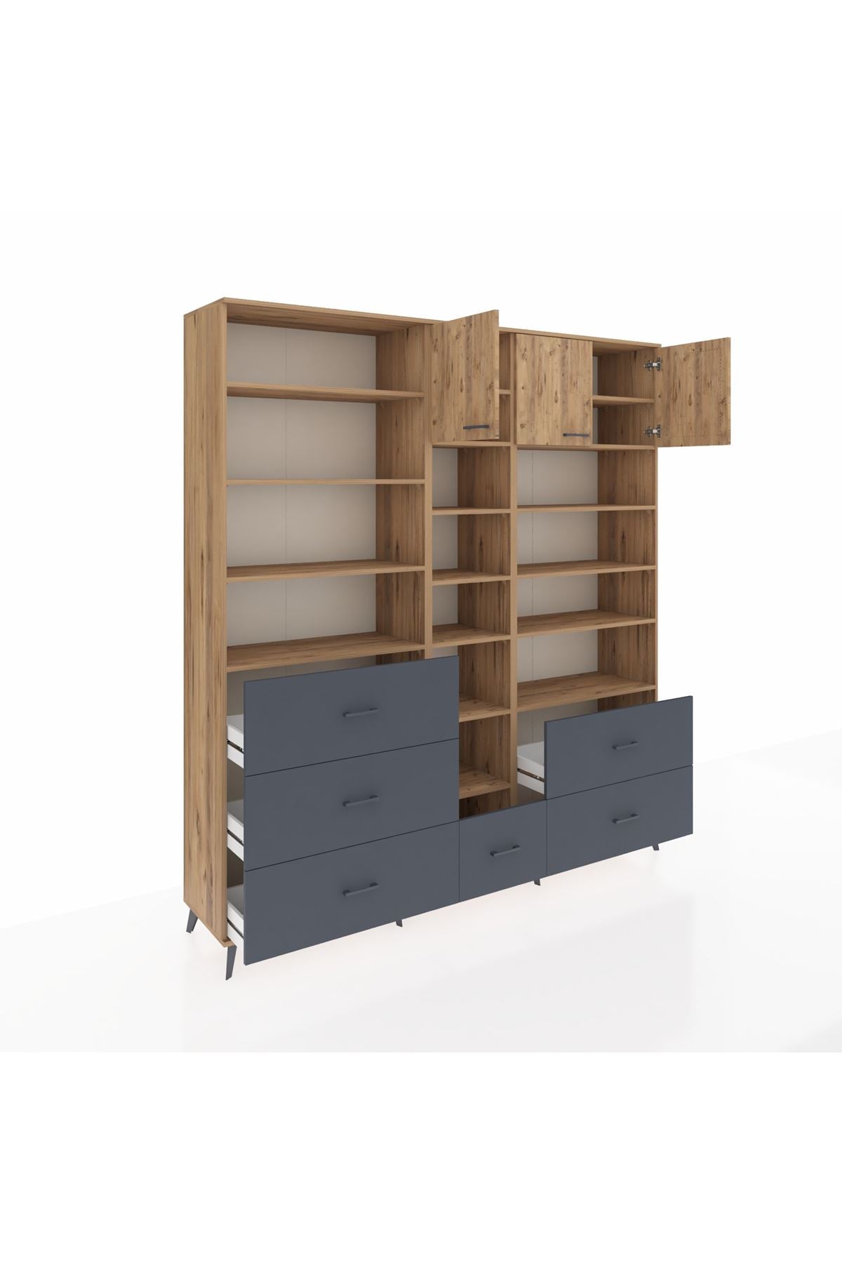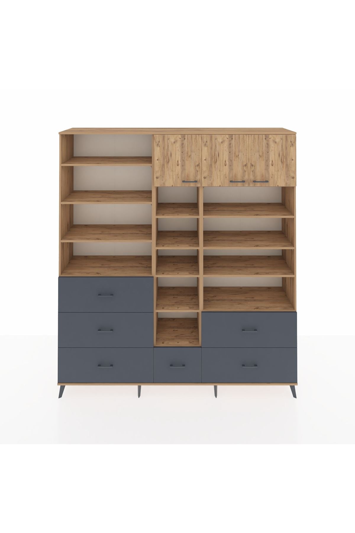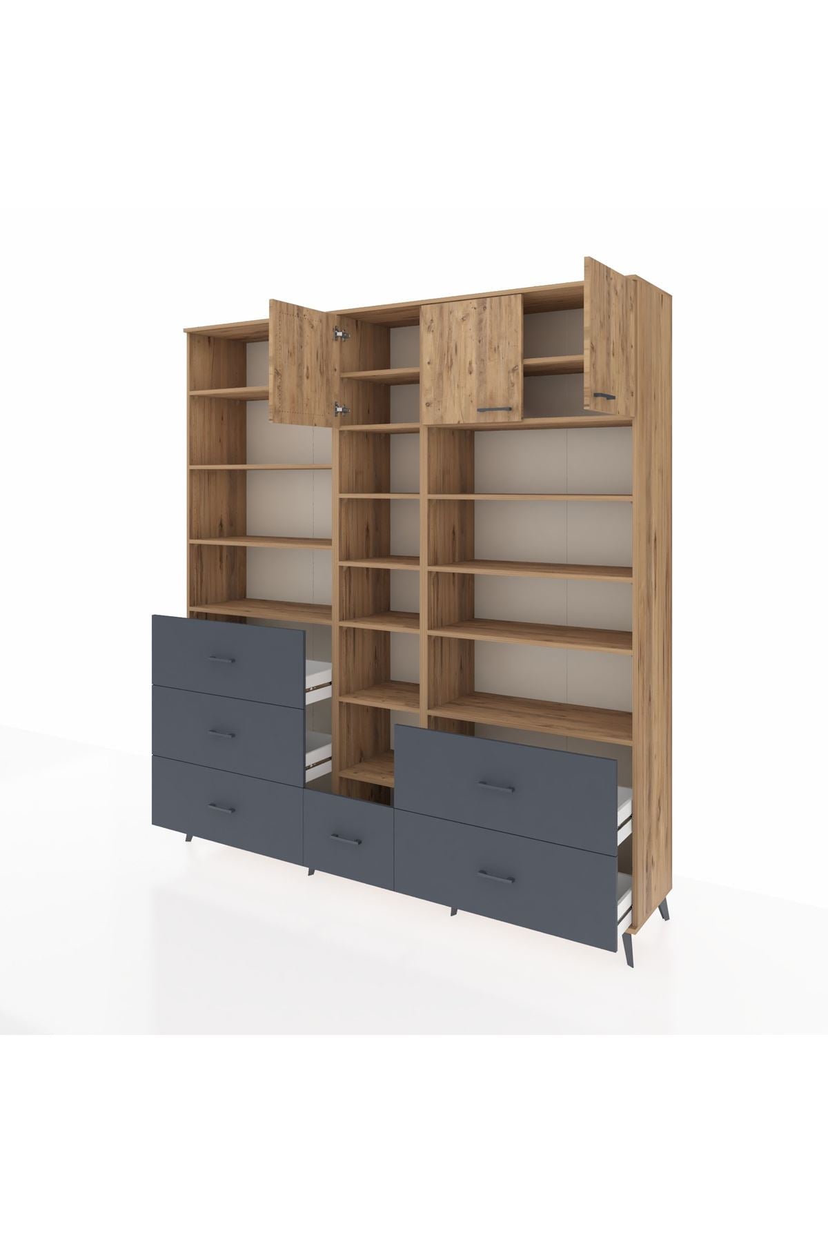 Hyperion Dolap 17 Raflı 6 Çekmeceli 3 Kapaklı 220x44x243 Çam-Çam/Antrasit