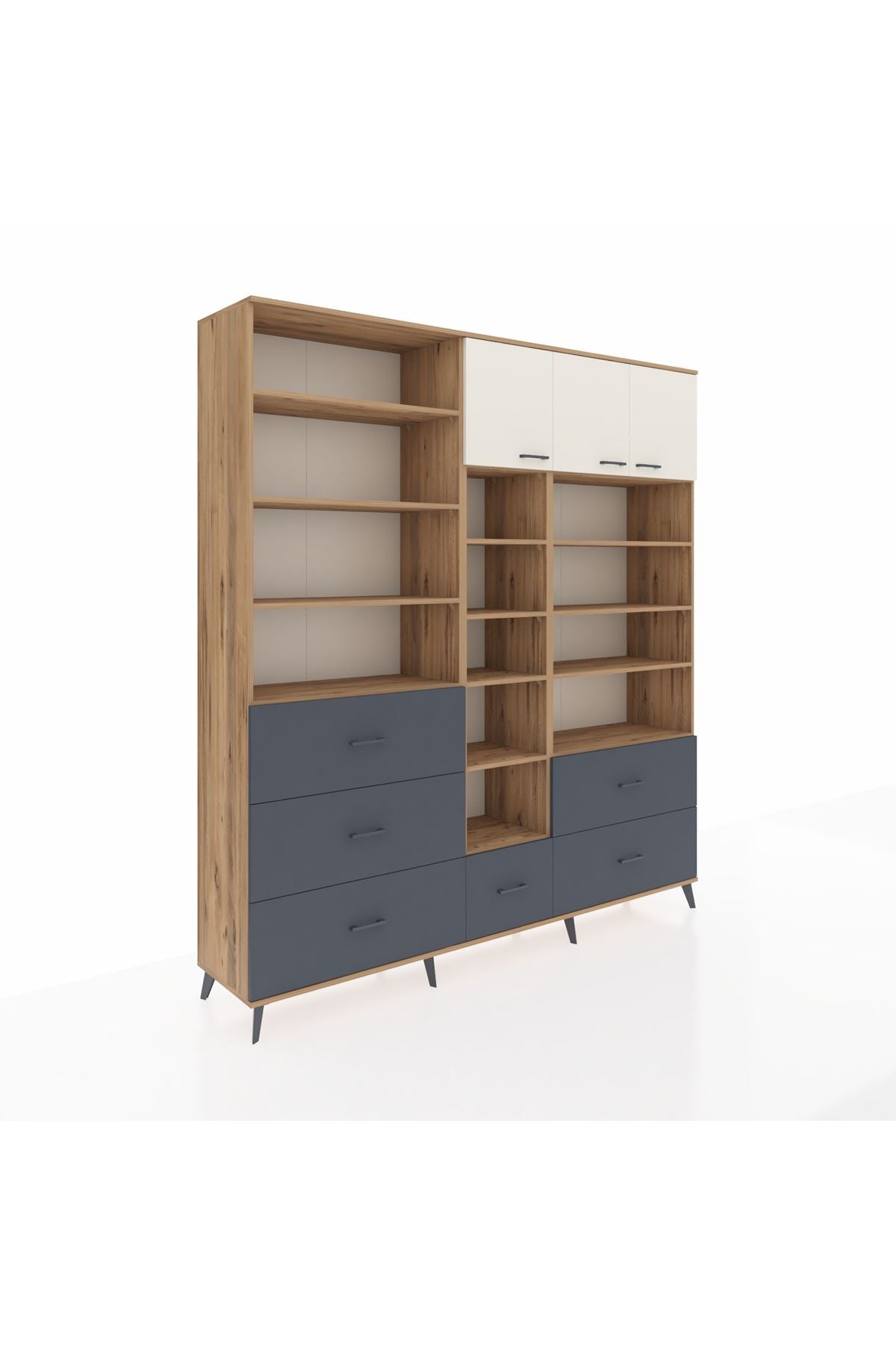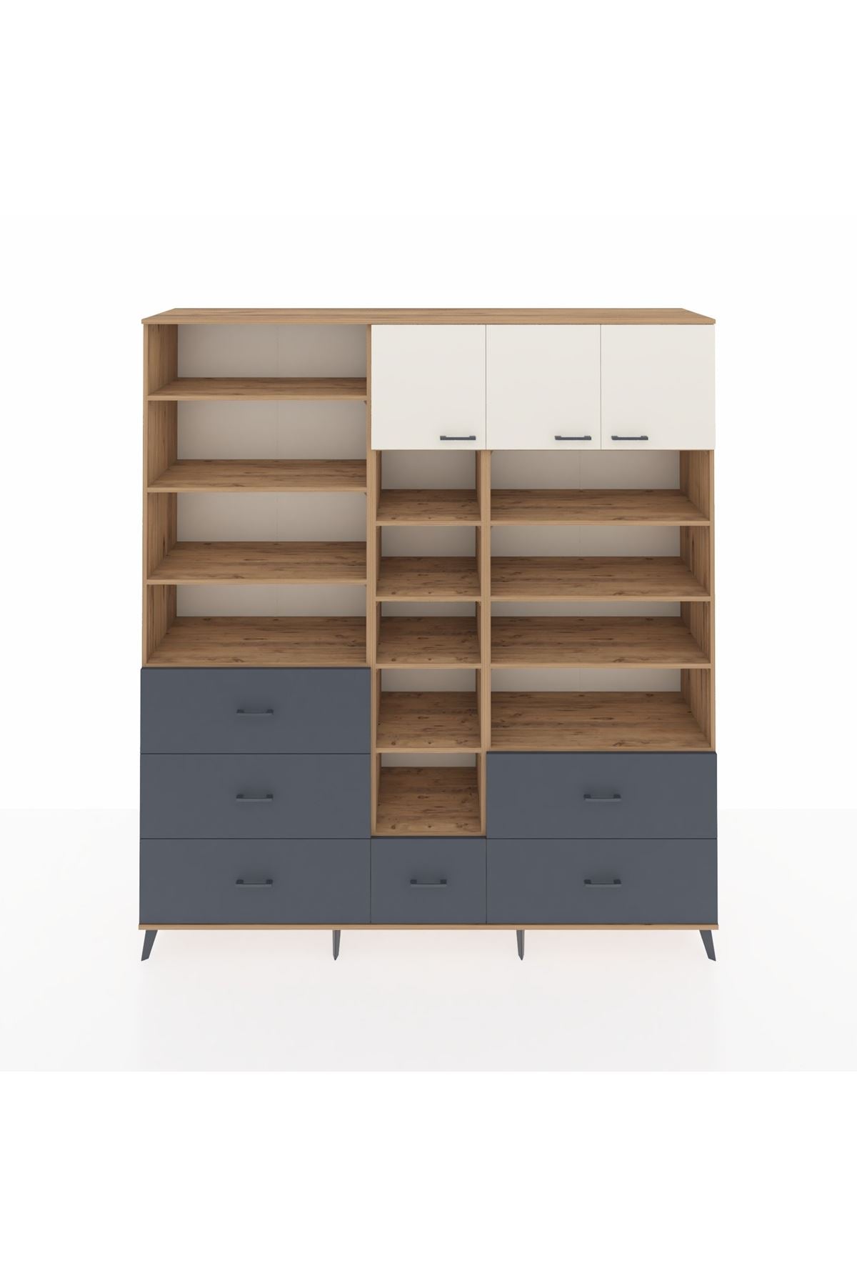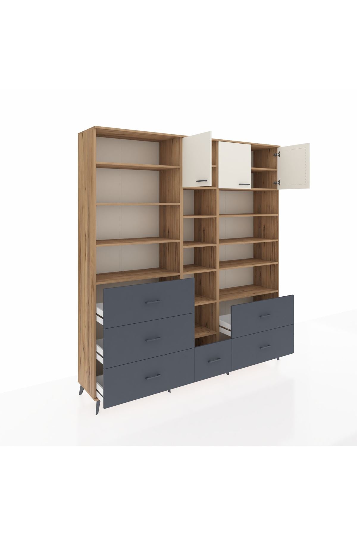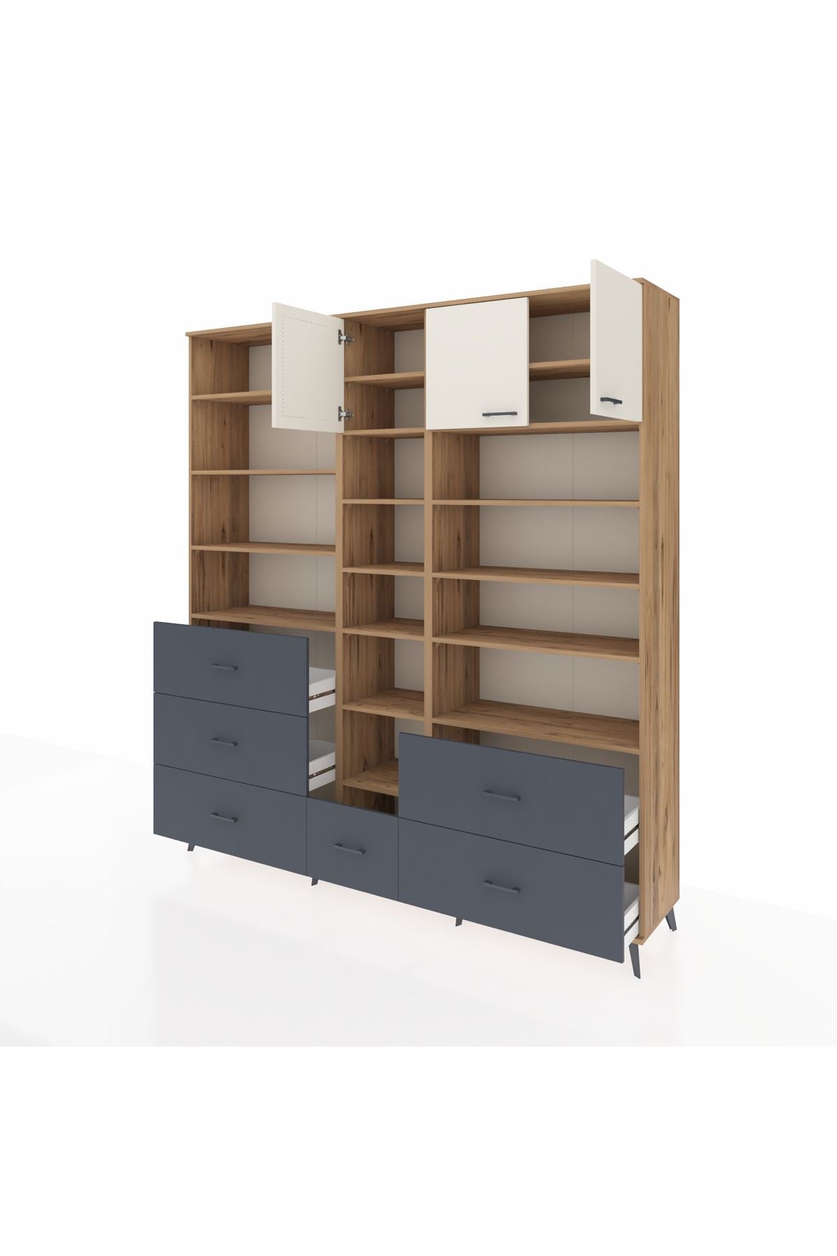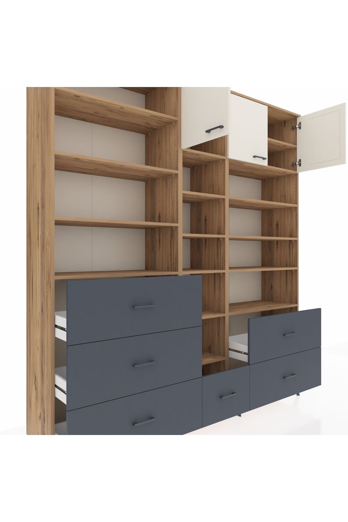 Hyperion Dolap 17 Raflı 6 Çekmeceli 3 Kapaklı 220x44x243 Çam-Aytaşı/Antrasit