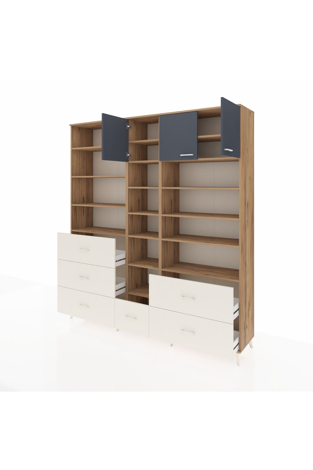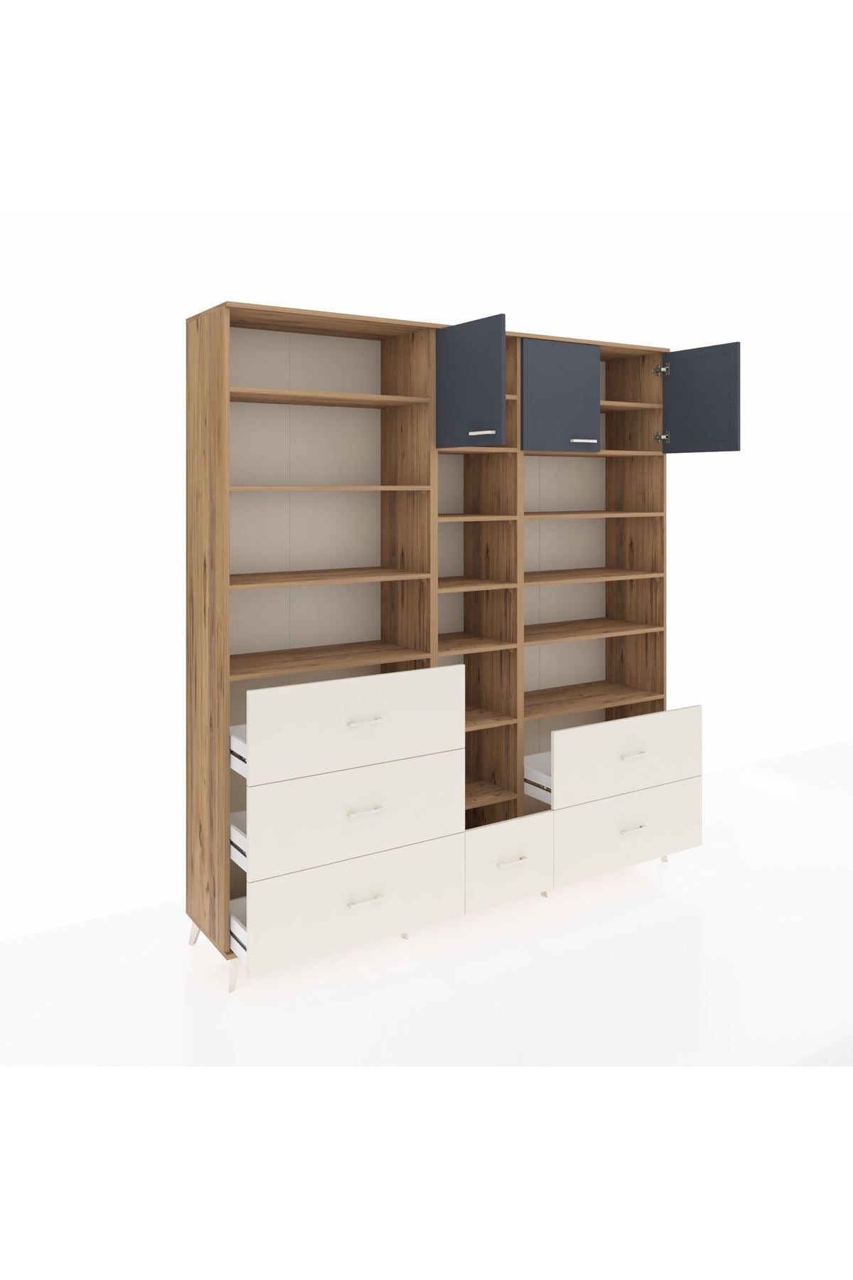 Hyperion Dolap 17 Raflı 6 Çekmeceli 3 Kapaklı 220x44x243 Çam-Antrasit/Aytaşı