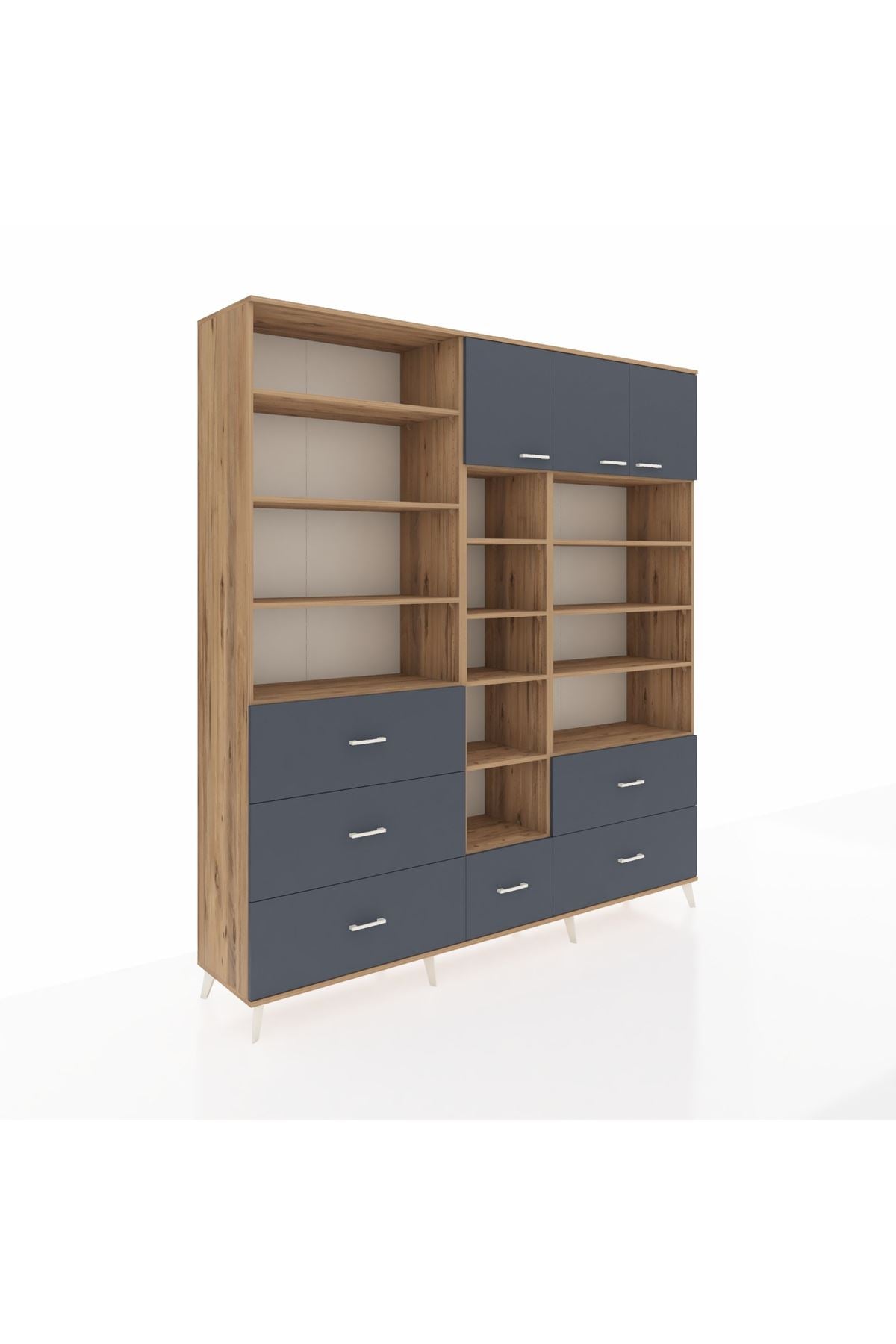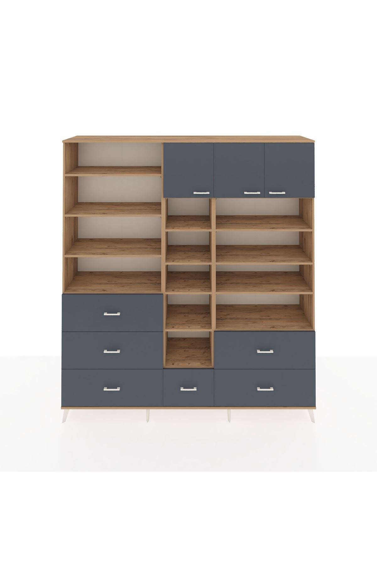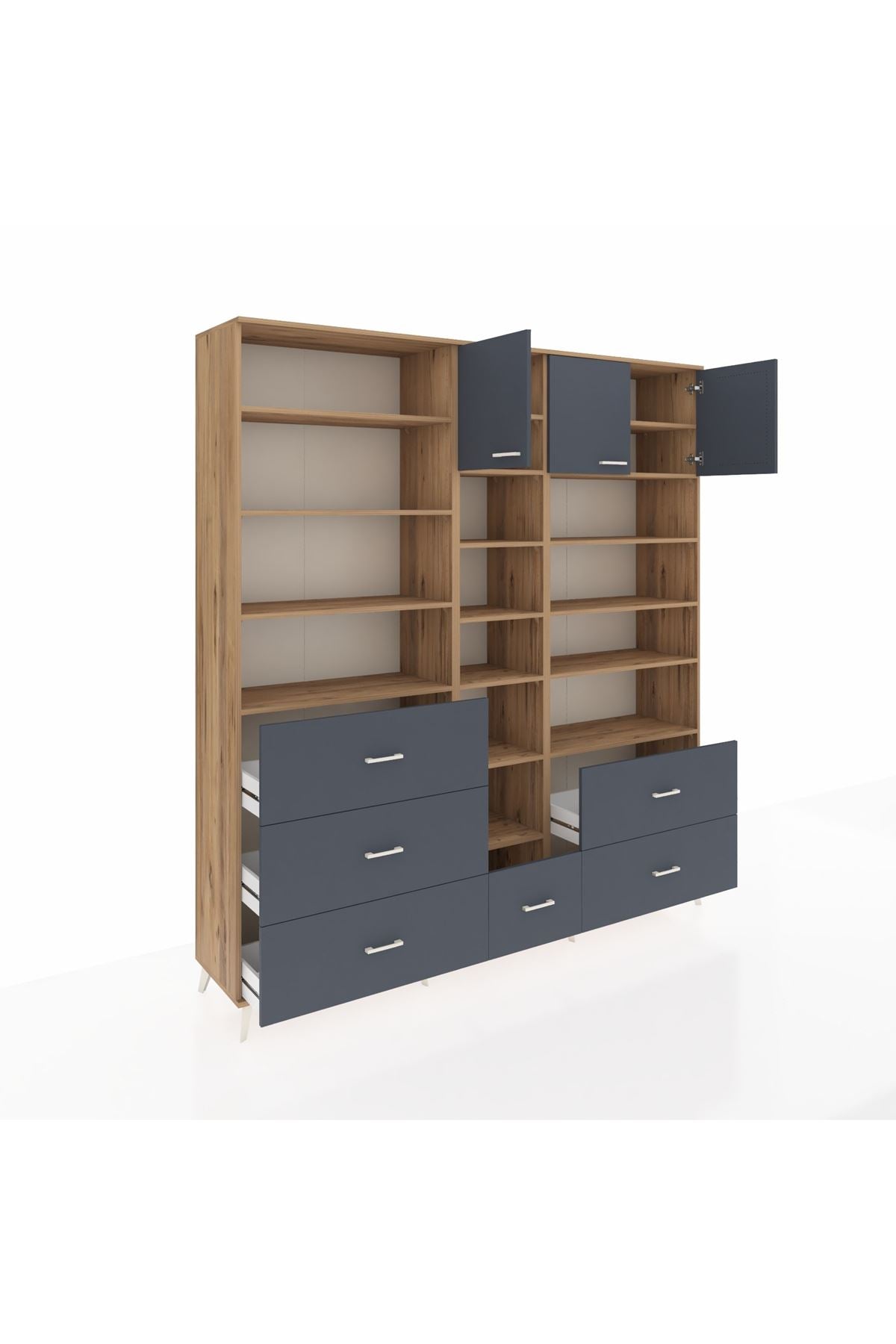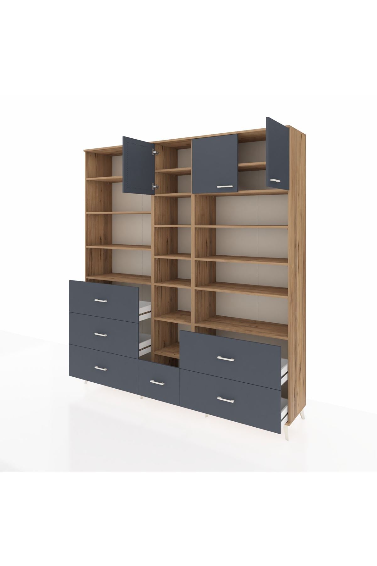 Hyperion Dolap 17 Raflı 6 Çekmeceli 3 Kapaklı 220x44x243 Çam-Antrasit/Antrasit