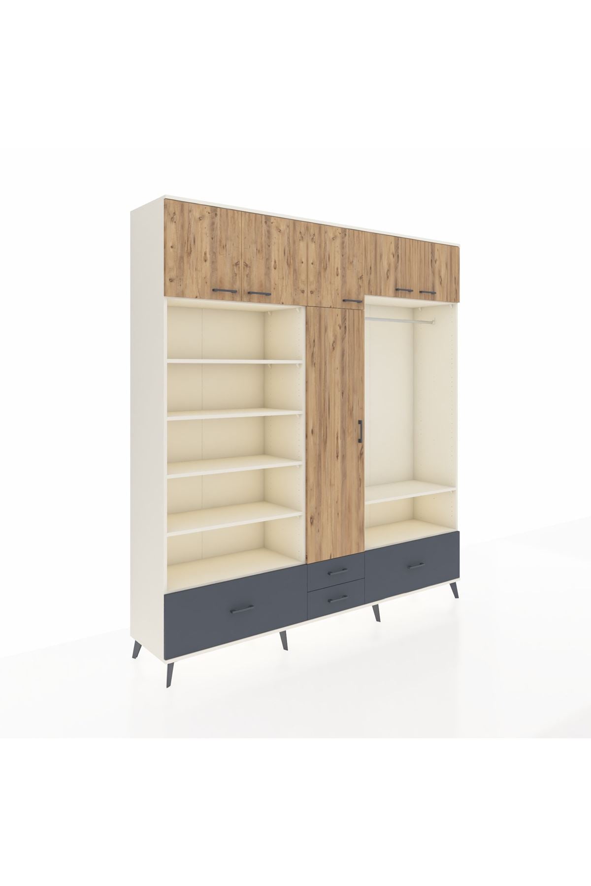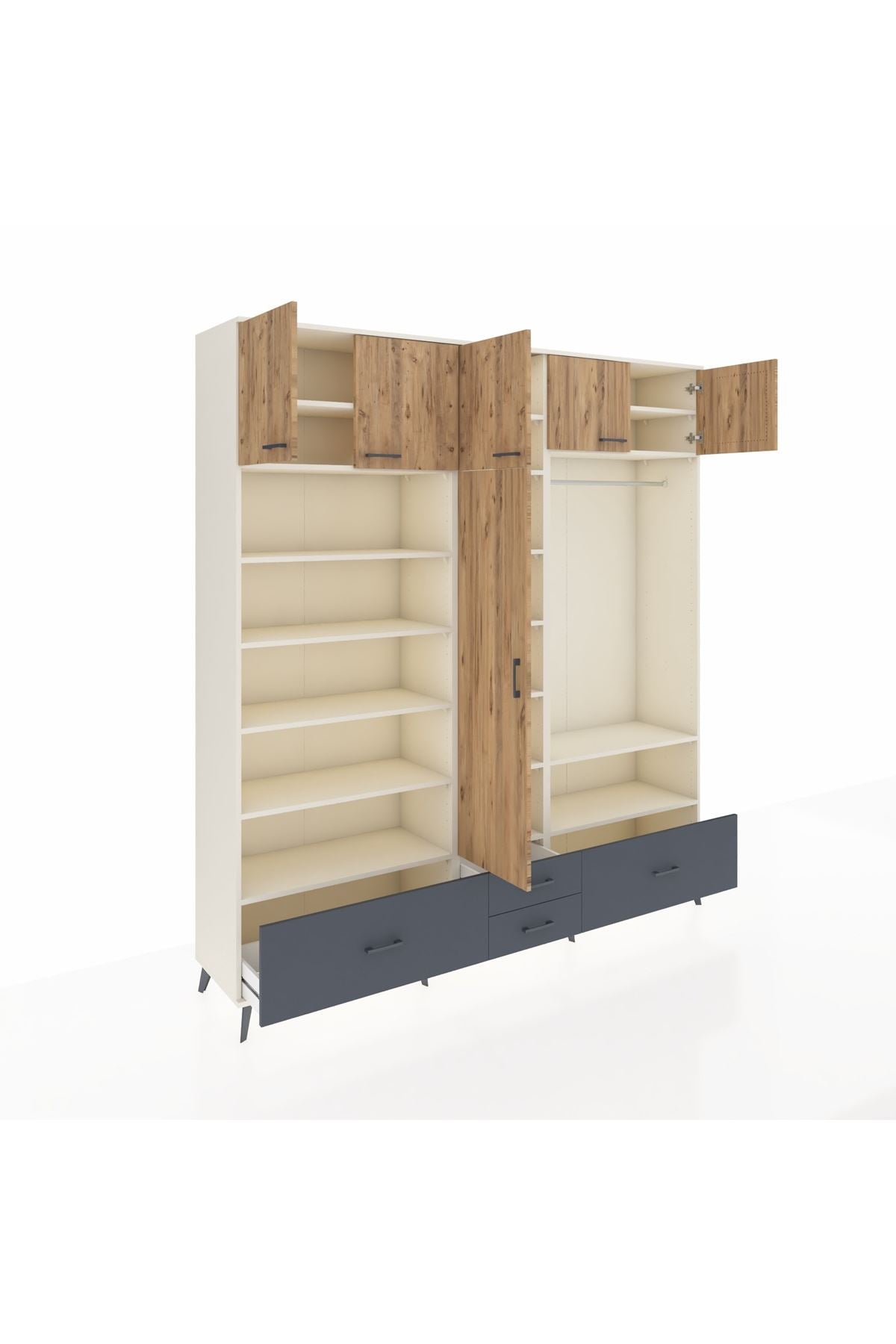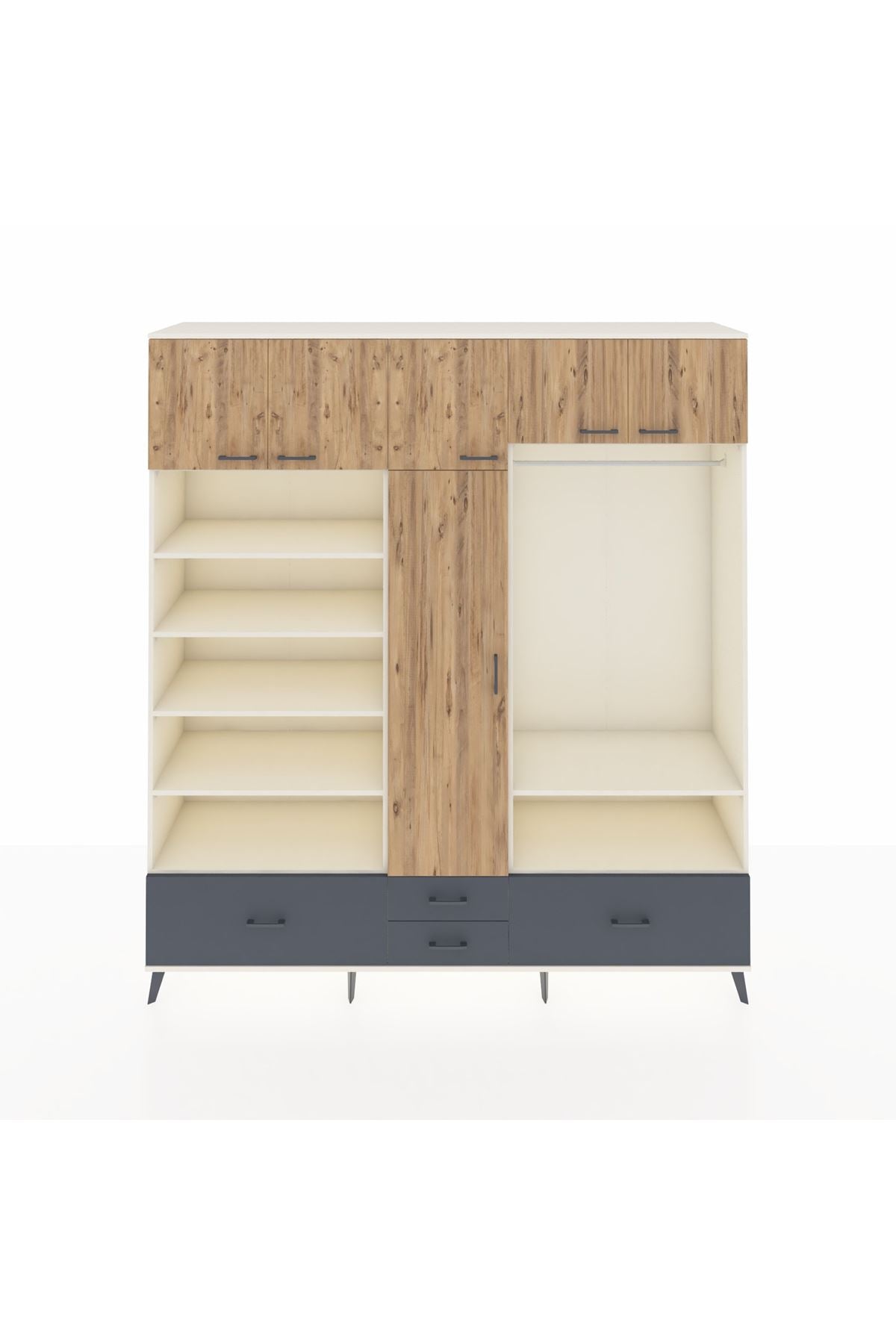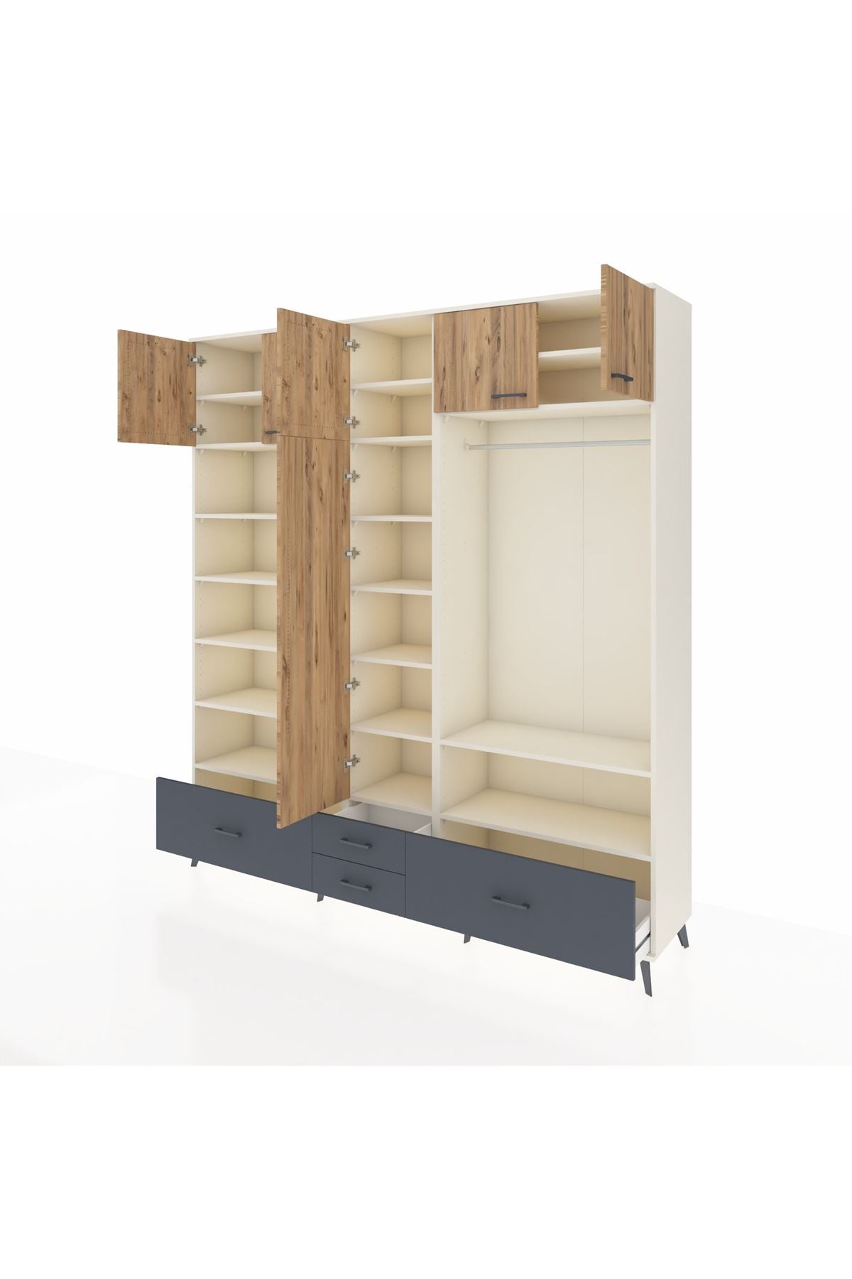 Hyperion Dolap 18 Raflı 4 Çekmeceli Tek Askılı 220x44x243 Aytaşı-Çam/Antrasit