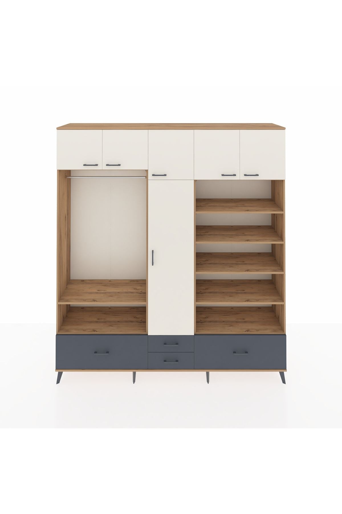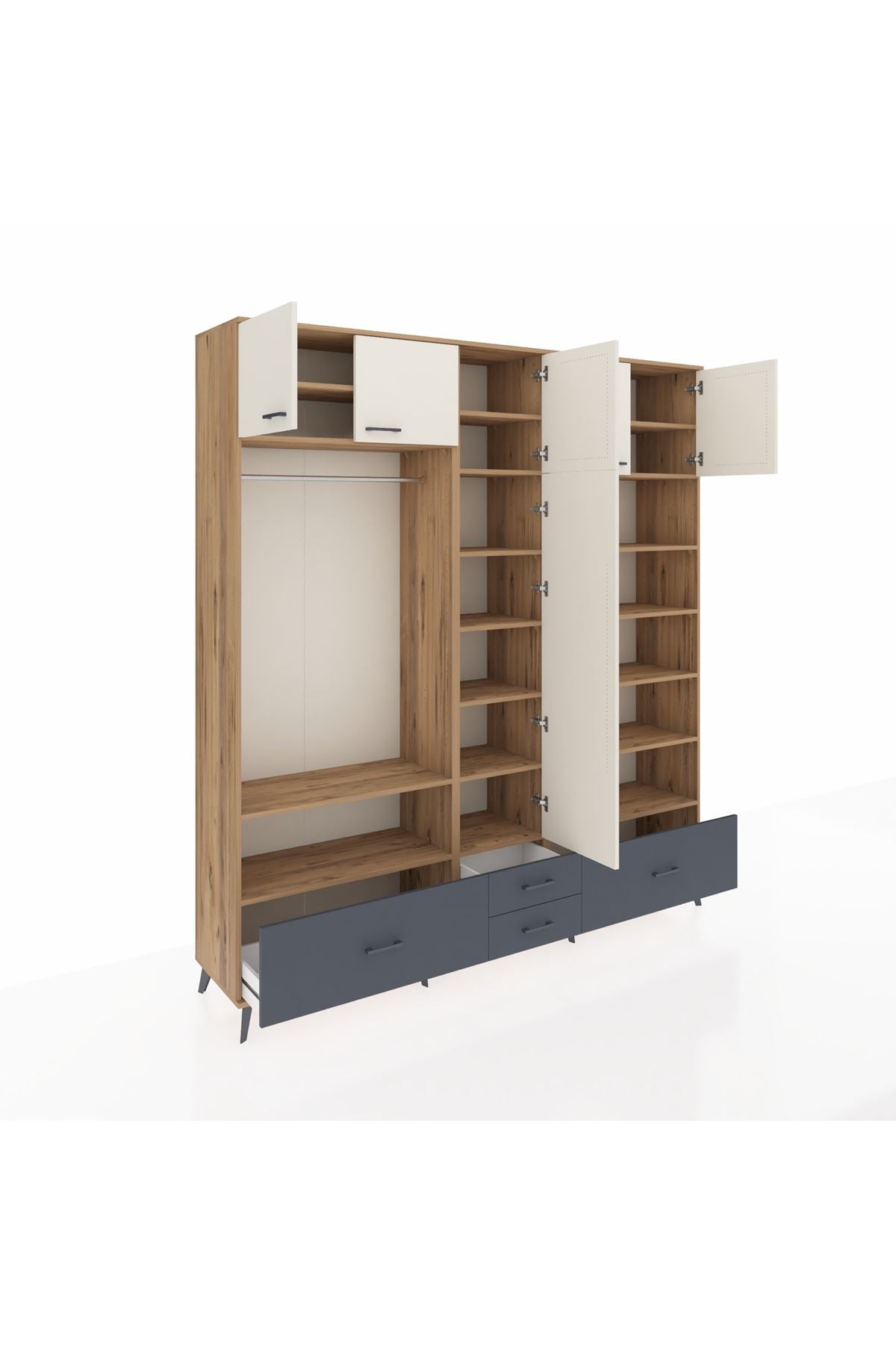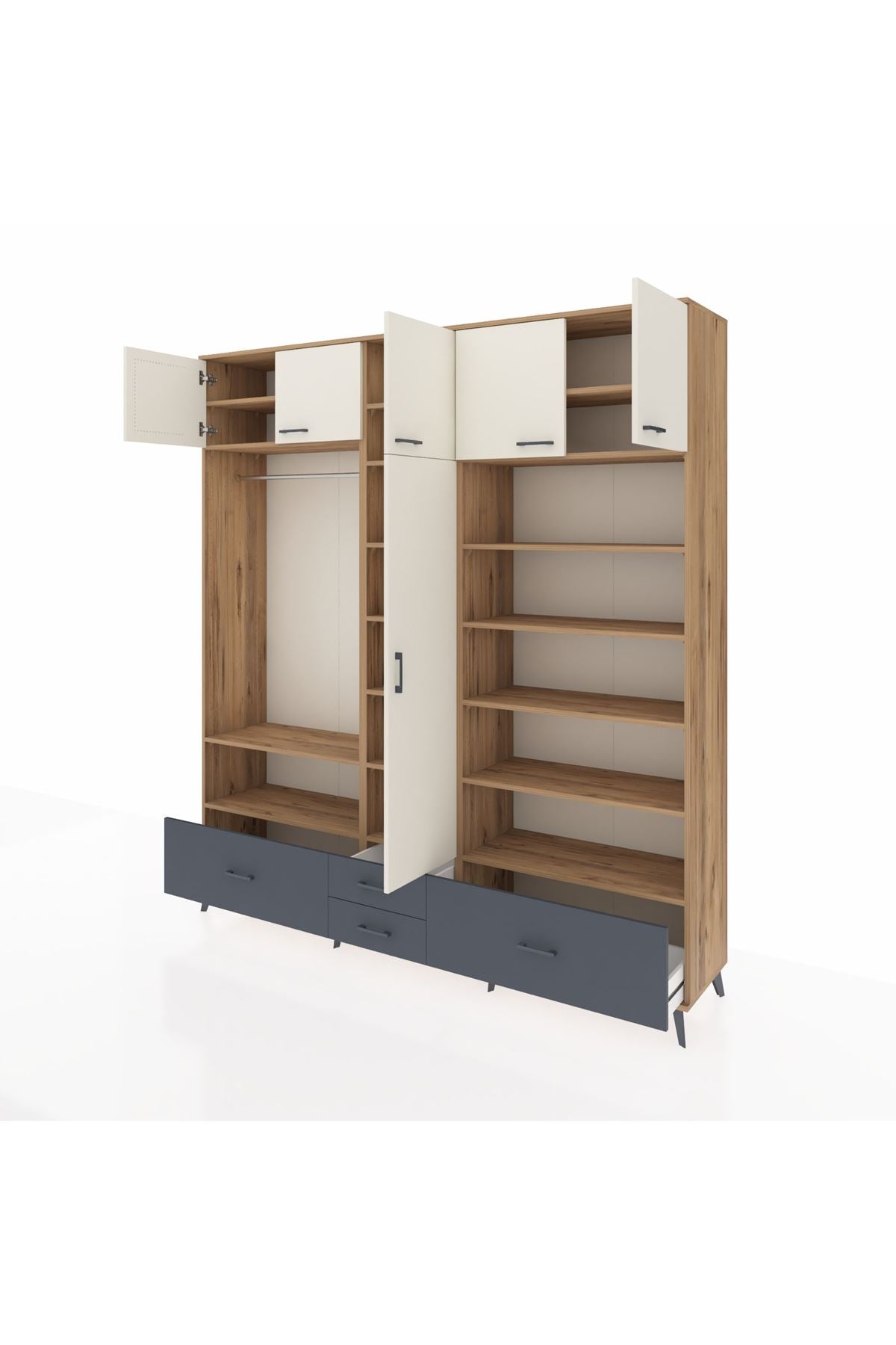 Hyperion Dolap 18 Raflı 4 Çekmeceli Tek Askılı 220x44x243 Çam-Aytaşı/Antrasit