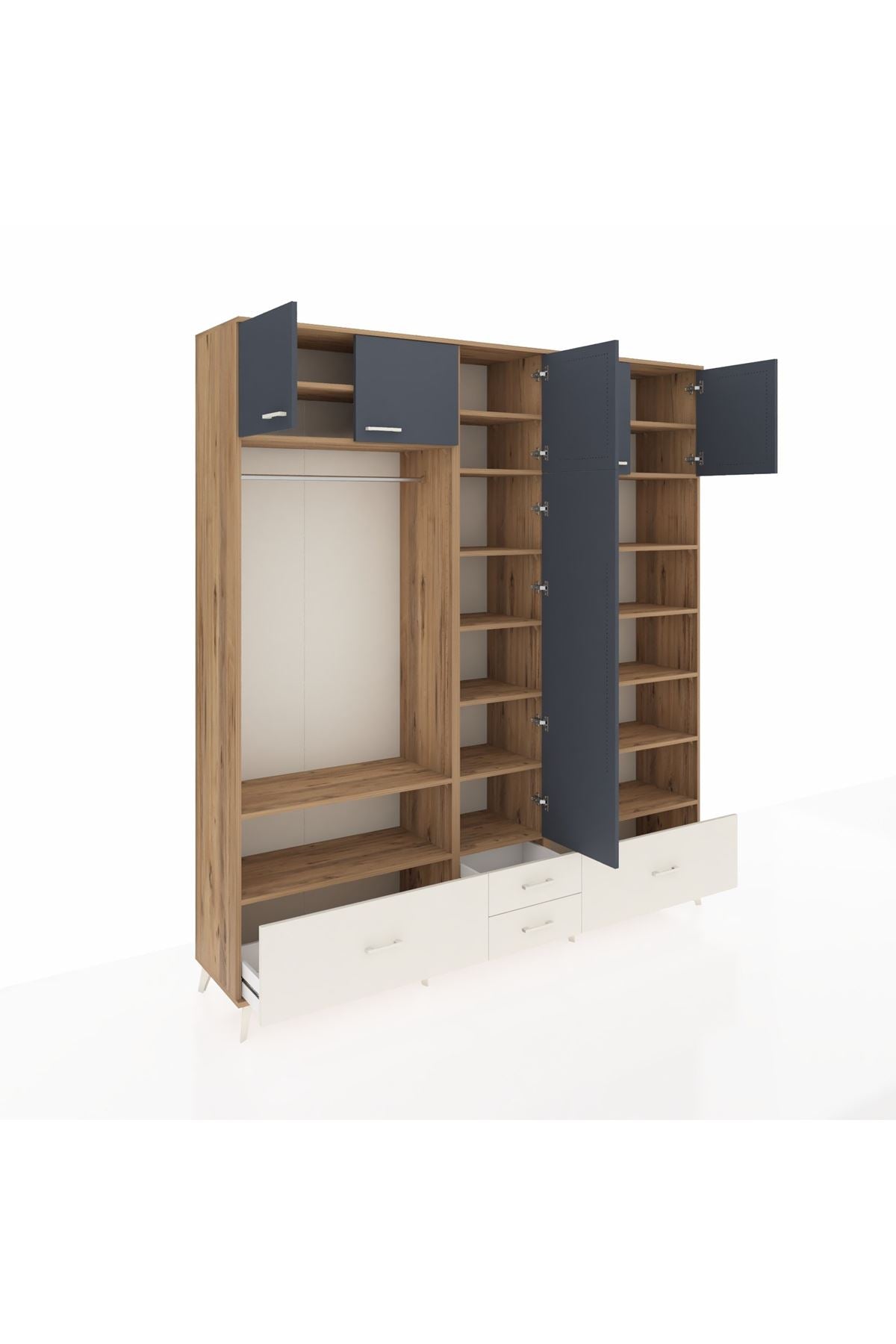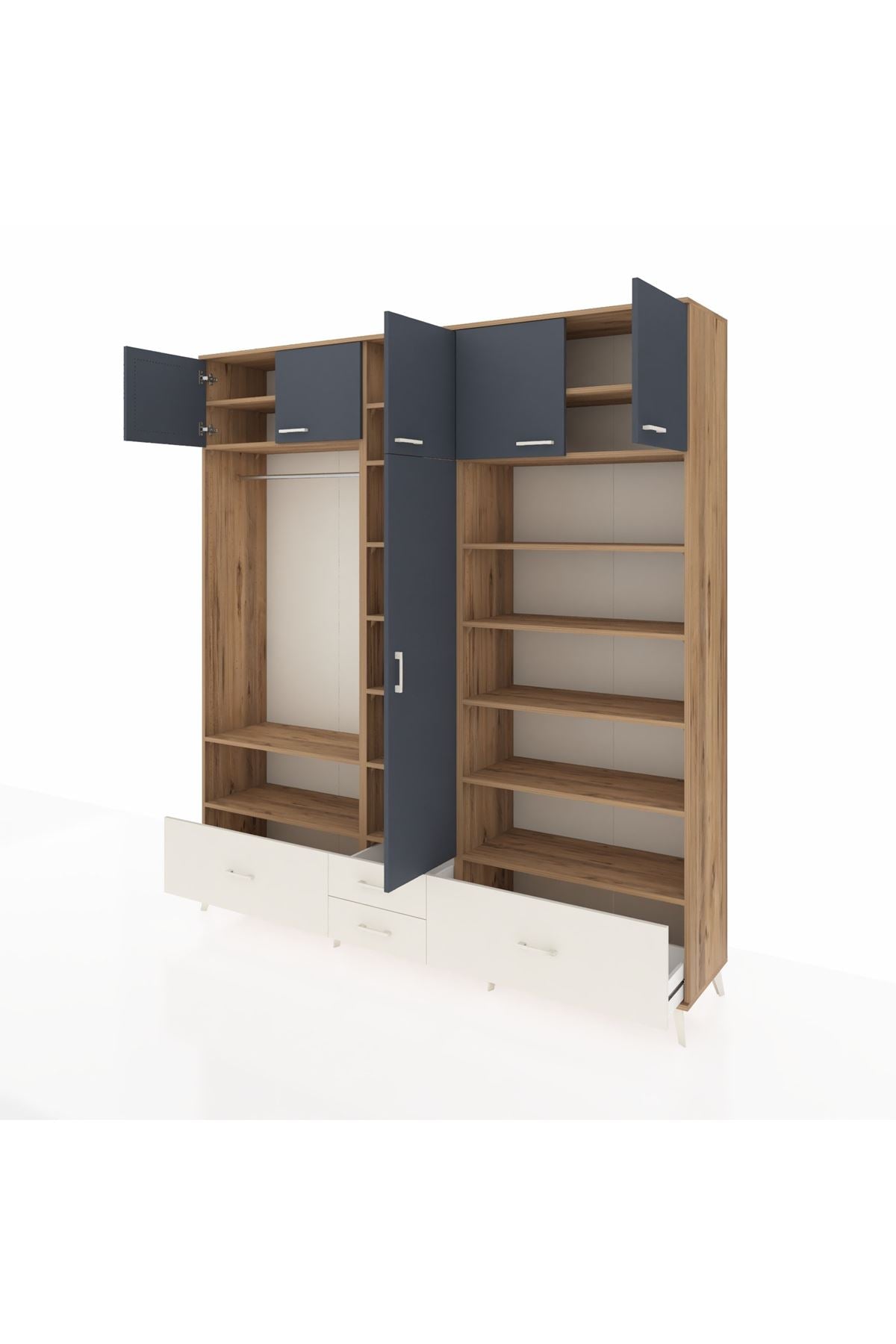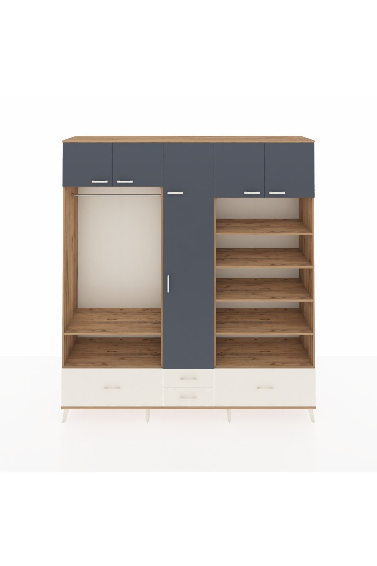 Hyperion Dolap 18 Raflı 4 Çekmeceli Tek Askılı 220x44x243 Çam-Antrasit/Aytaşı