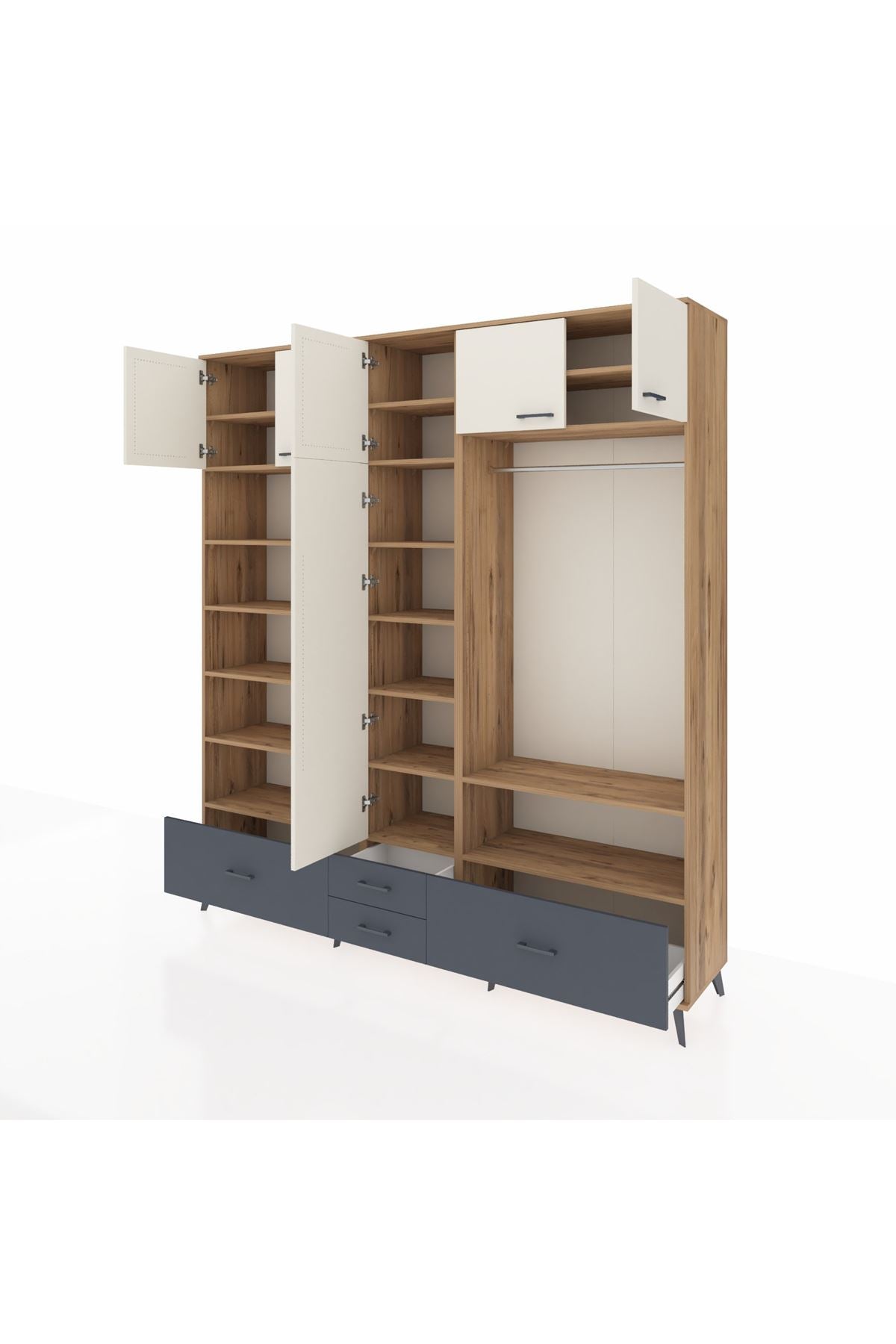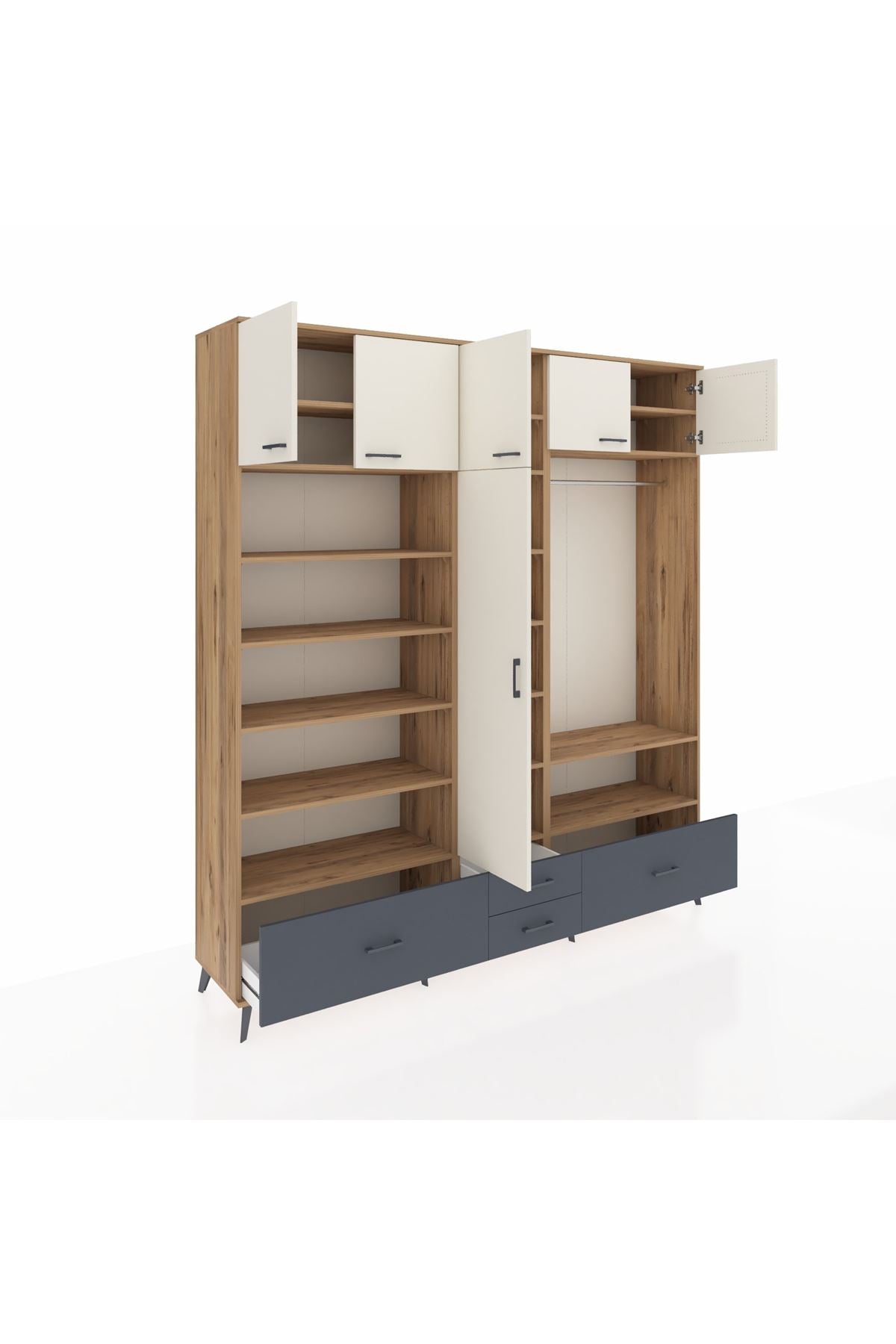 Hyperion Dolap 18 Raflı 4 Çekmeceli Tek Askılı 220x44x243 Çam-Aytaşı/Antrasit