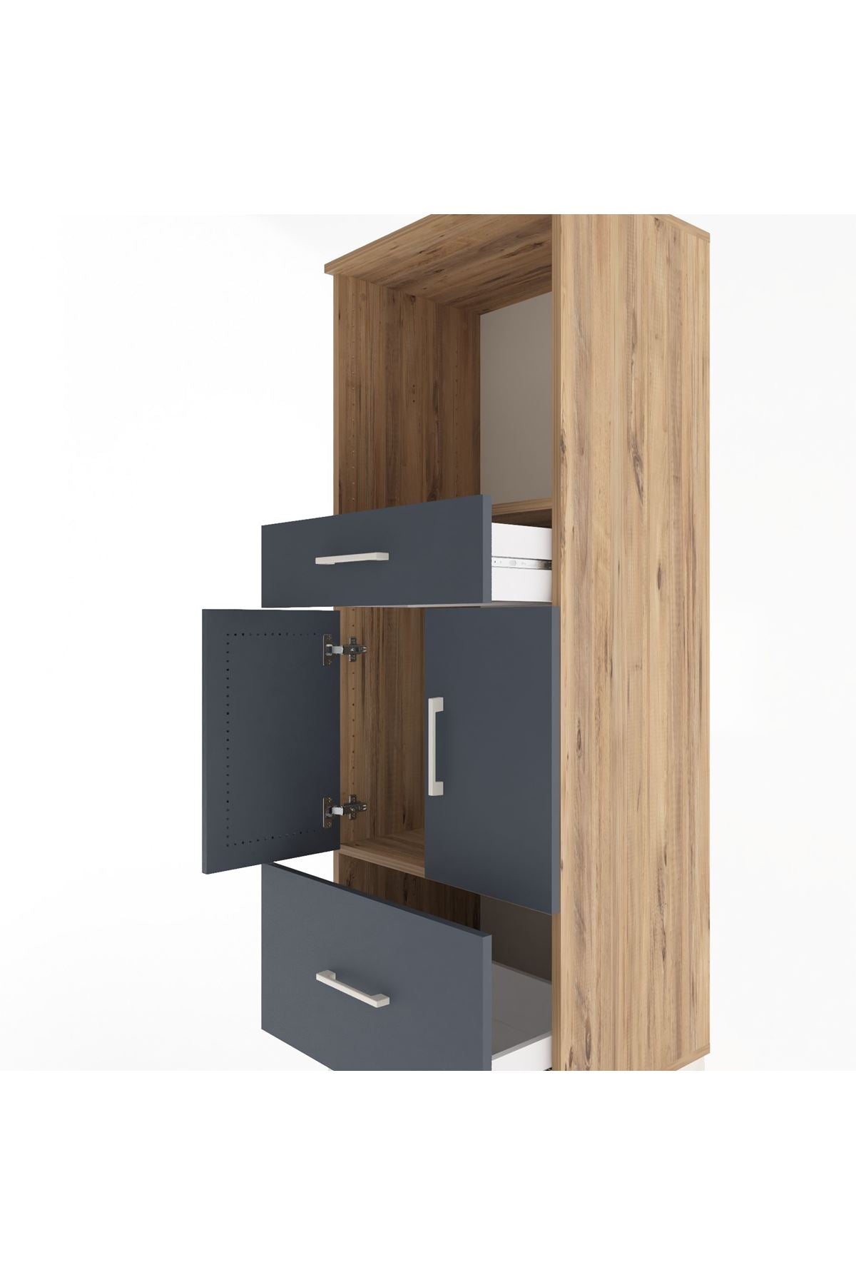 Hyperion Dolap 2 Raflı 2 Çekmeceli 2 Kapaklı 60x44x163 Çam-Antrasit