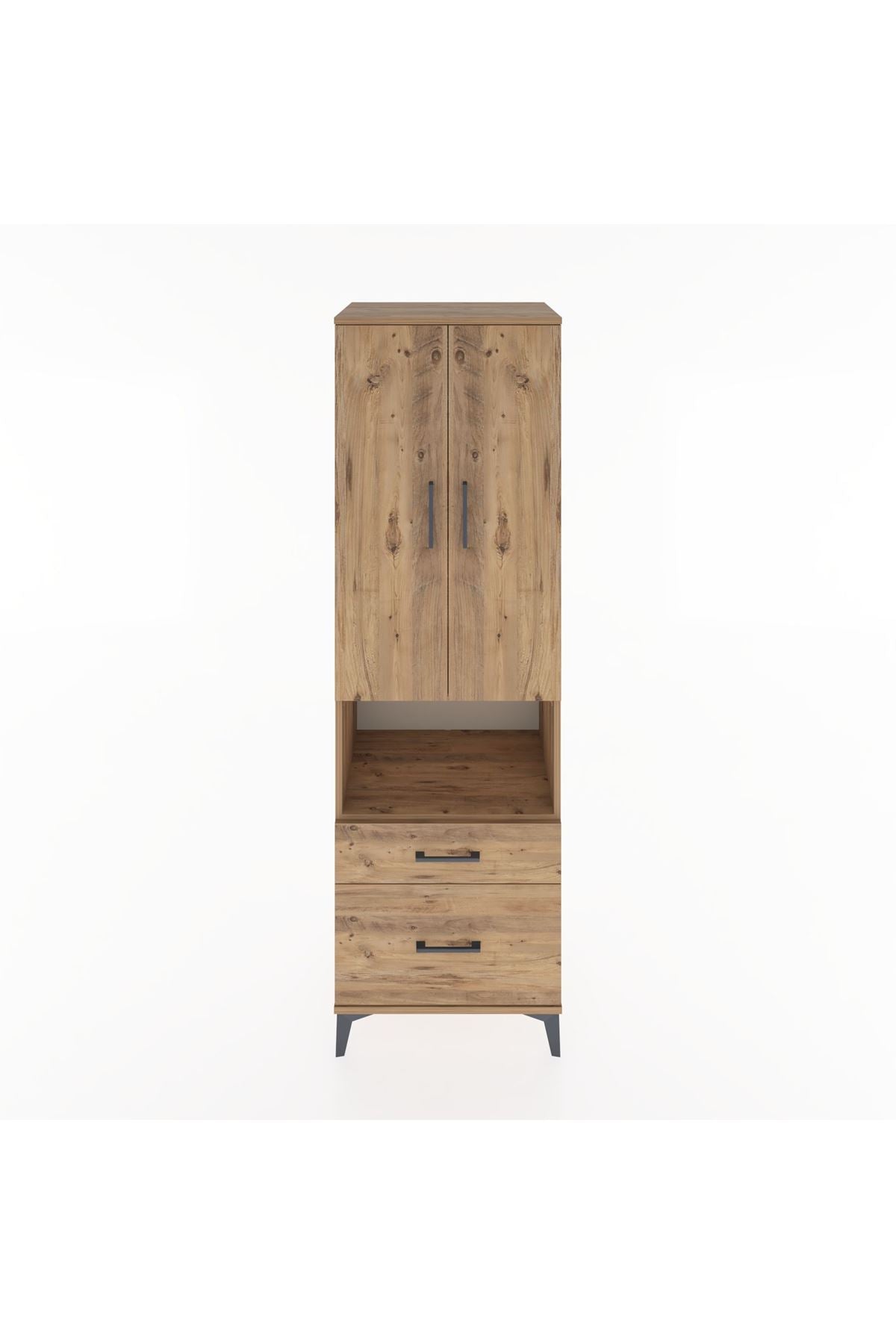 Hyperion Dolap 2 Raflı 2 Çekmeceli Tek Askılı 60x44x195 Çam-Çam