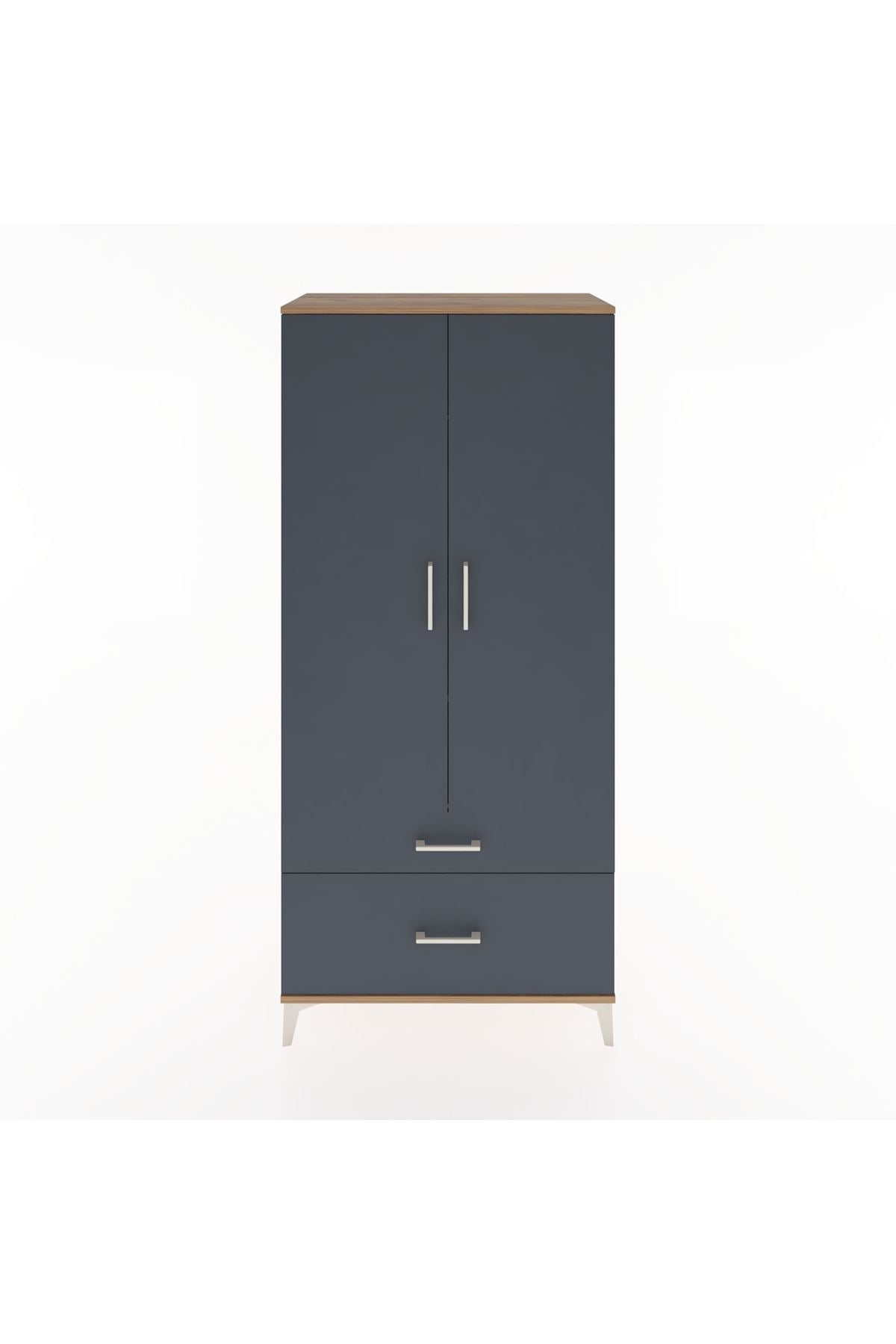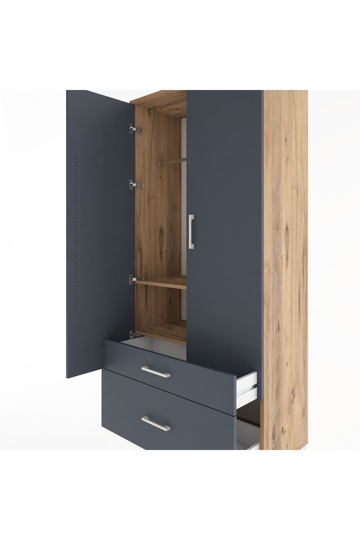 Hyperion Dolap 2 Raflı 2 Çekmeceli Tek Askılı 88x44x195 Çam-Antrasit