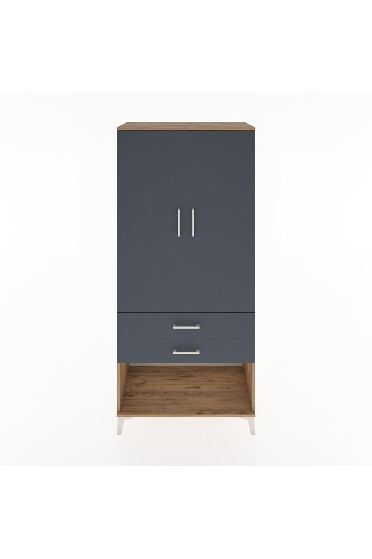 Hyperion Dolap 2 Raflı 2 Çekmeceli Tek Askılı 88x44x195 Çam-Antrasit
