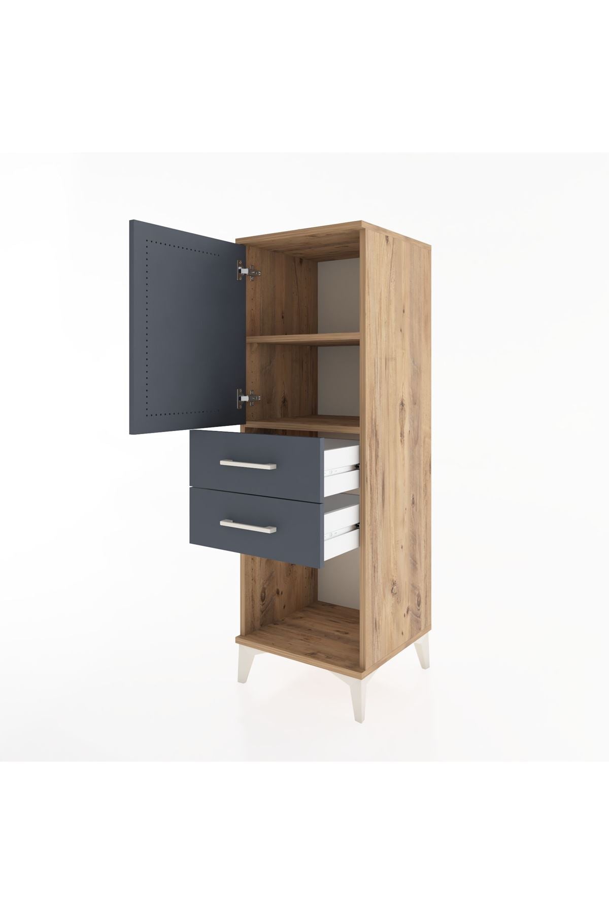 Hyperion Dolap 2 Raflı 2 Çekmeceli Tek Kapaklı 44x44x134 Çam-Antrasit