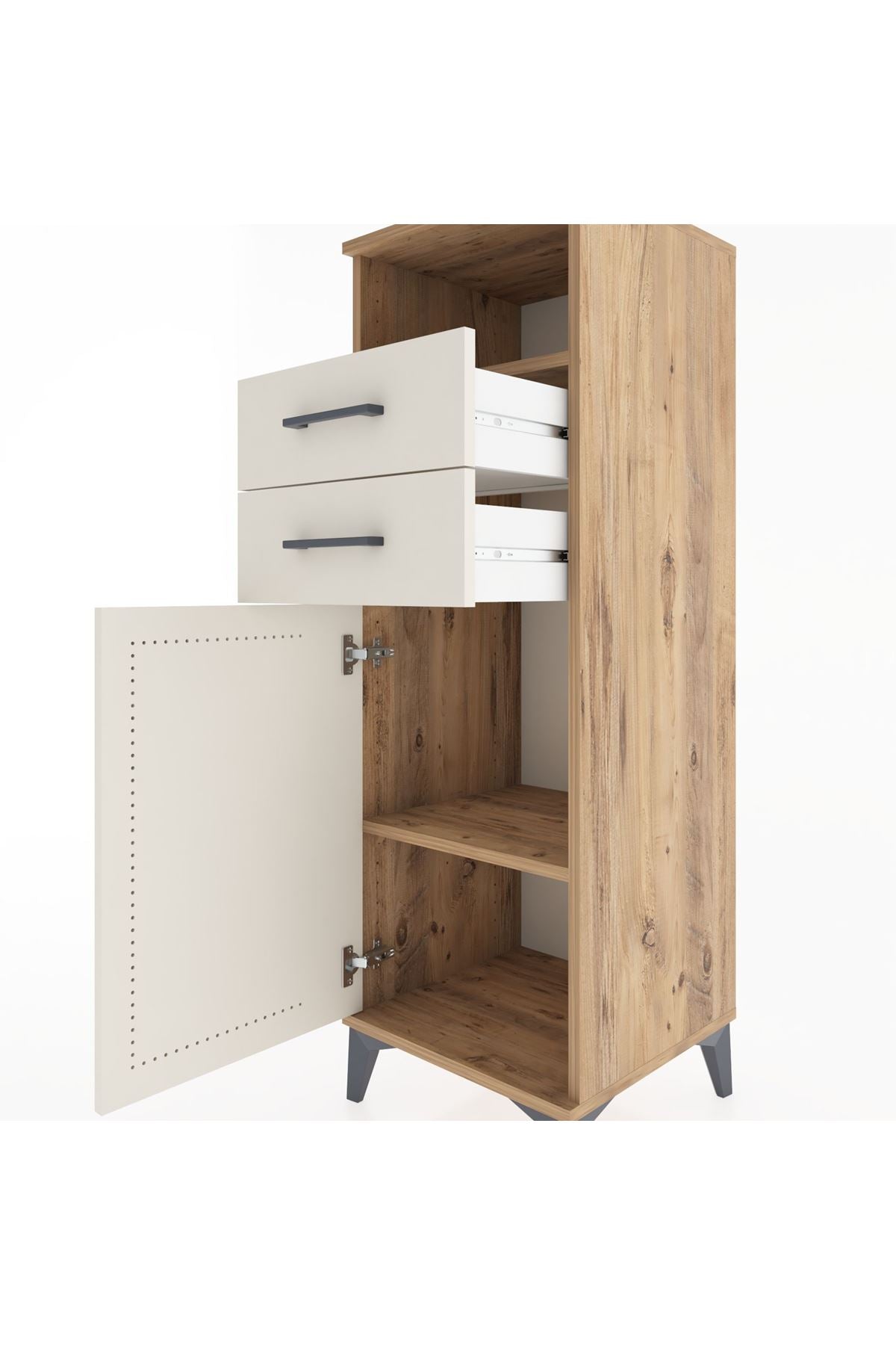 Hyperion Dolap 2 Raflı 2 Çekmeceli Tek Kapaklı 44x44x134 Çam-Aytaşı