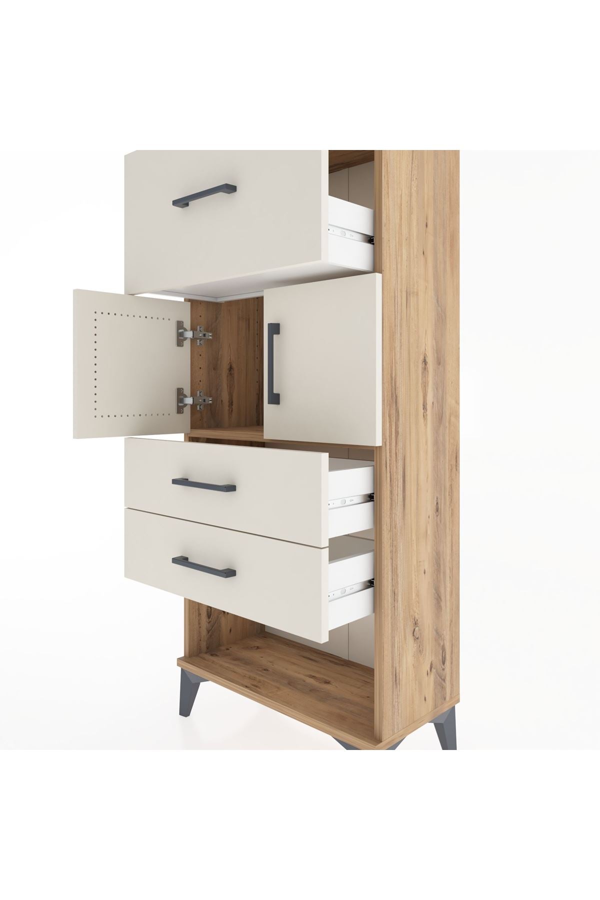 Hyperion Dolap 2 Raflı 3 Çekmeceli 2 Kapaklı 60x44x134 Çam-Aytaşı