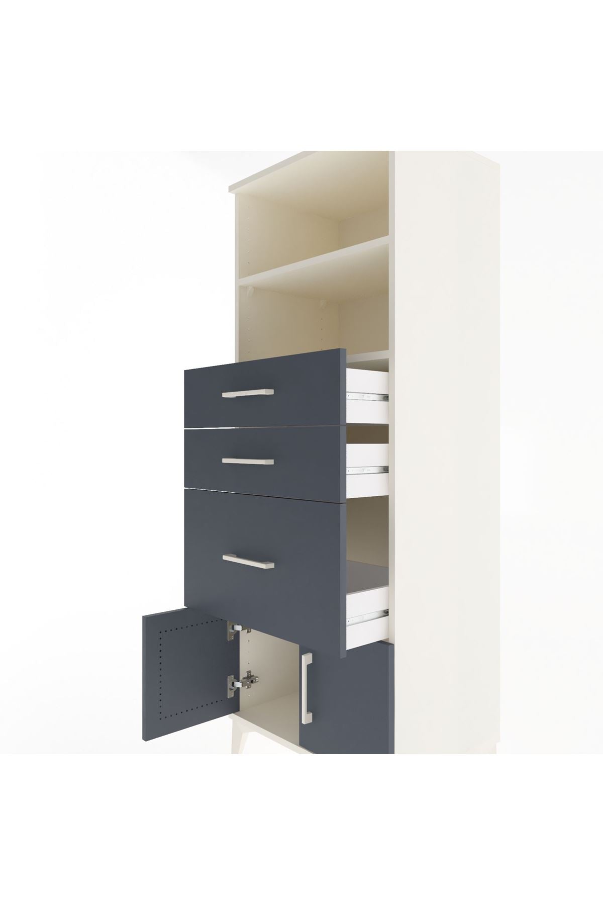 Hyperion Dolap 2 Raflı 3 Çekmeceli 2 Kapaklı 60x44x163 Aytaşı-Antrasit