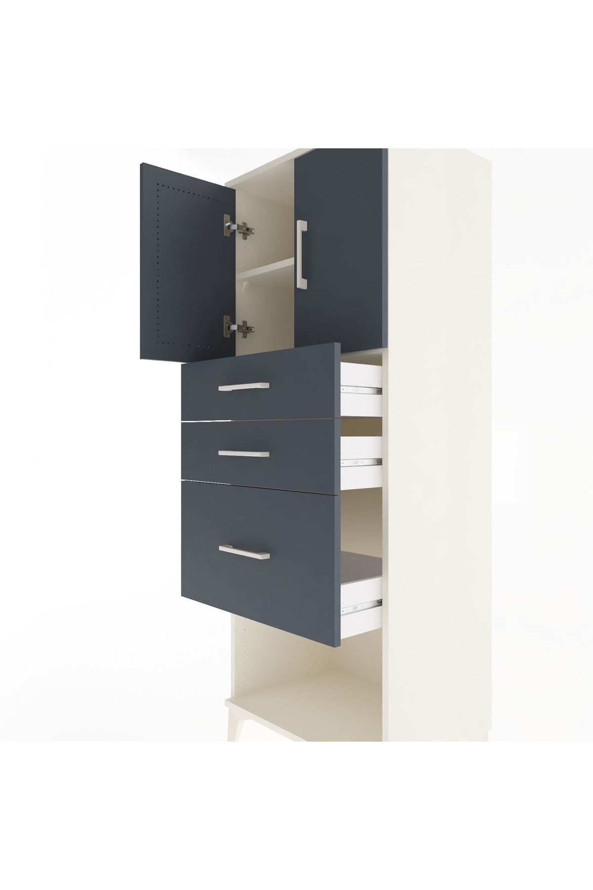 Hyperion Dolap 2 Raflı 3 Çekmeceli 2 Kapaklı 60x44x163 Aytaşı-Antrasit