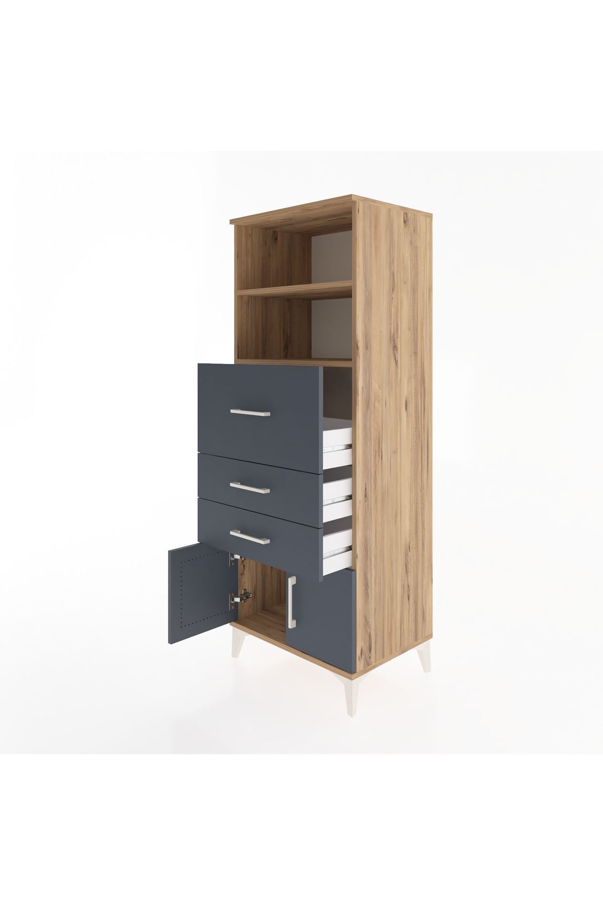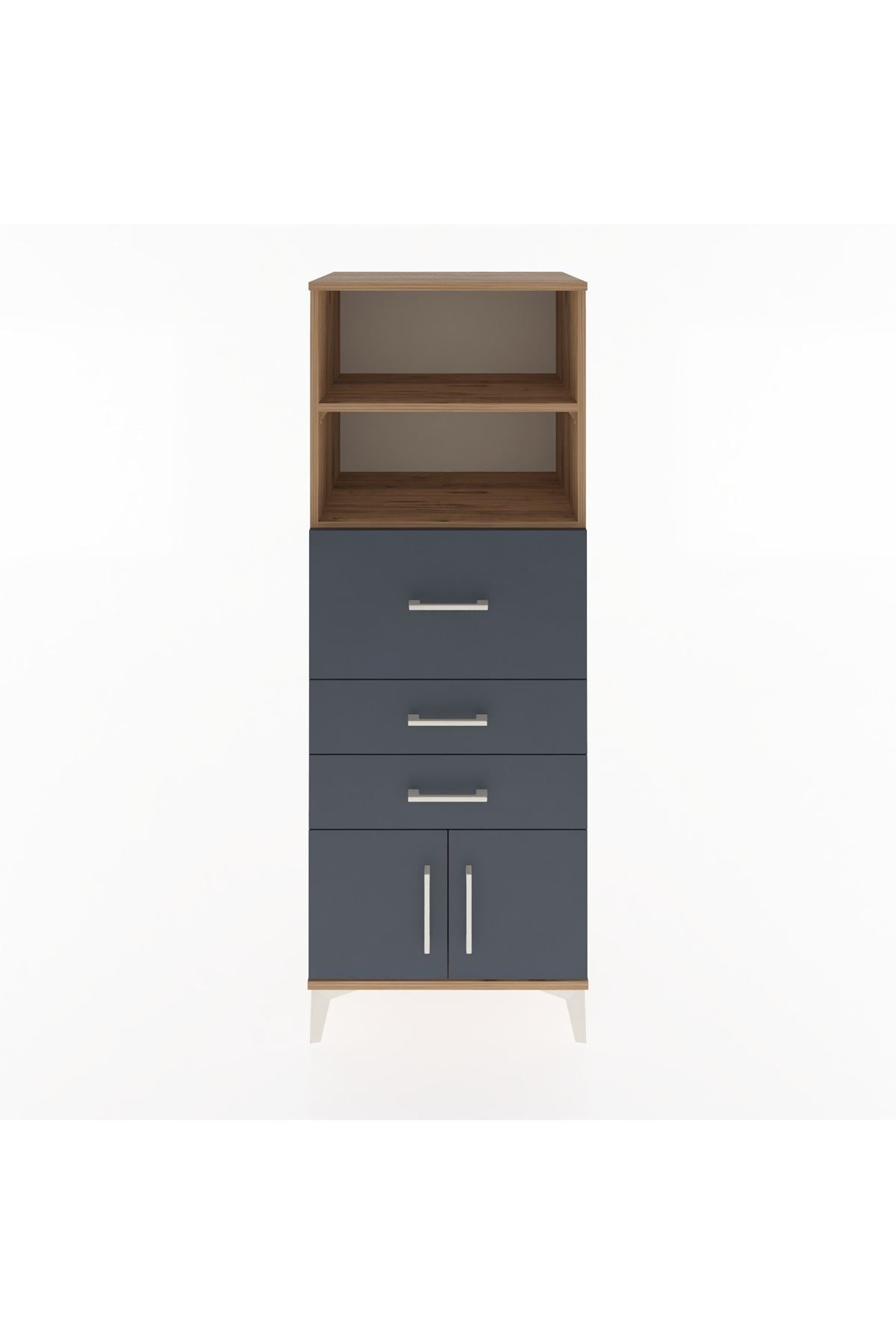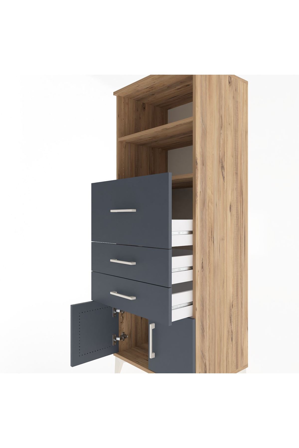 Hyperion Dolap 2 Raflı 3 Çekmeceli 2 Kapaklı 60x44x163 Çam-Antrasit