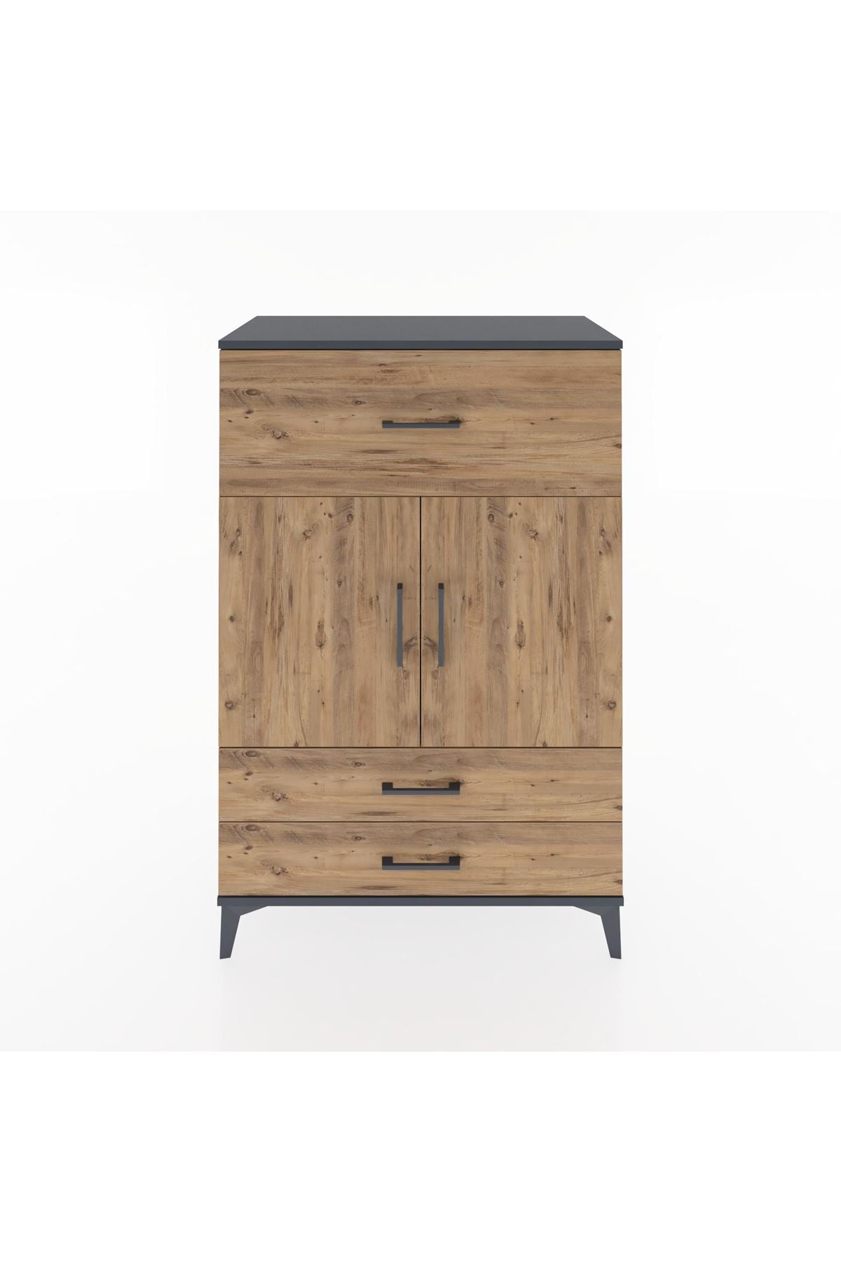 Hyperion Dolap 2 Raflı 3 Çekmeceli 2 Kapaklı 88x44x134 Antrasit-Çam