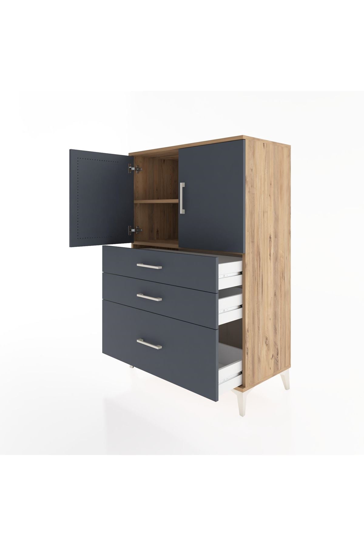 Hyperion Dolap 2 Raflı 3 Çekmeceli 2 Kapaklı 88x44x134 Çam-Antrasit