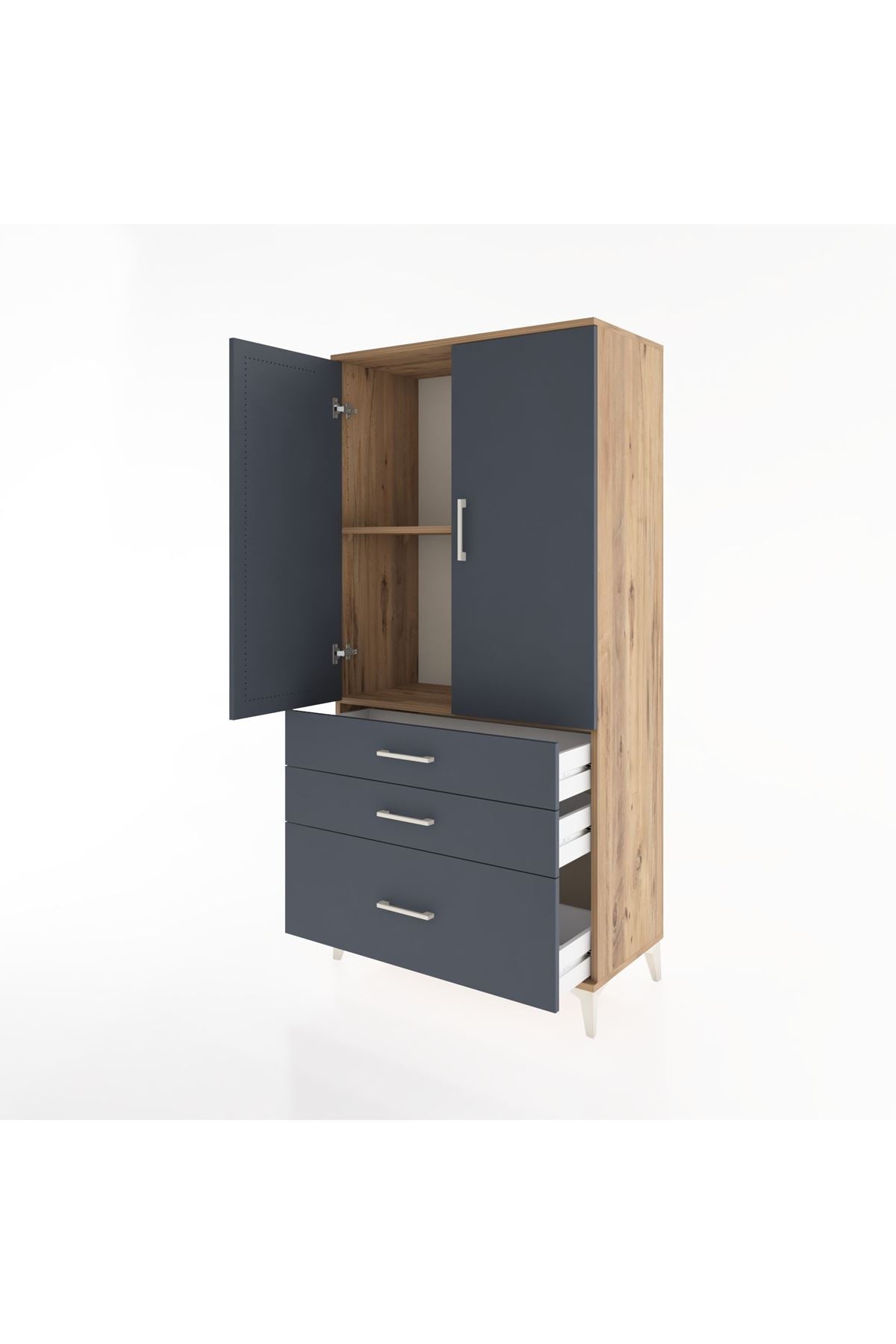 Hyperion Dolap 2 Raflı 3 Çekmeceli 2 Kapaklı 88x44x182 Çam-Antrasit