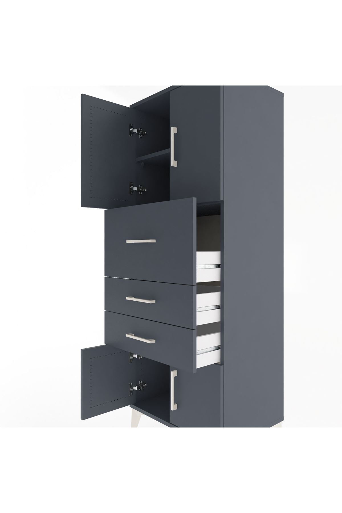 Hyperion Dolap 2 Raflı 3 Çekmeceli 4 Kapaklı 60x44x163 Antrasit-Antrasit