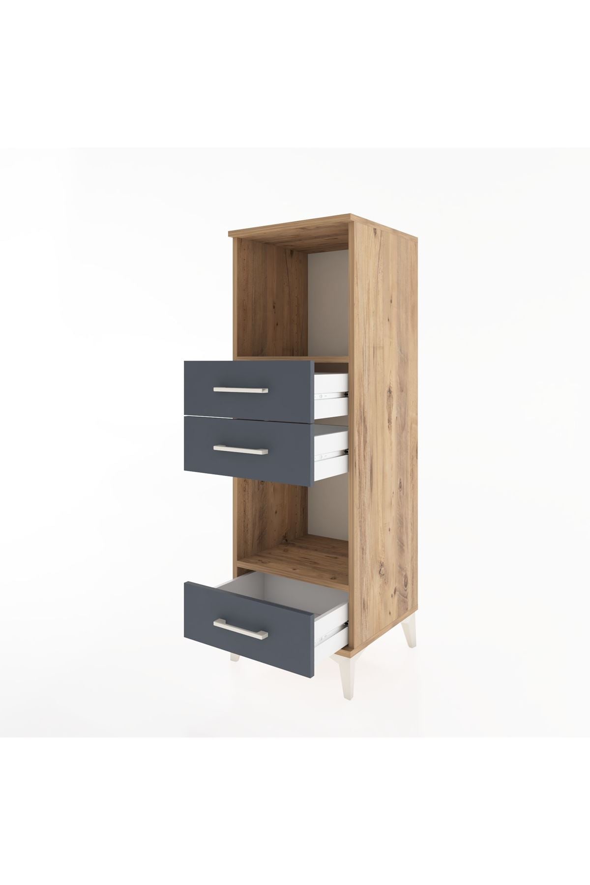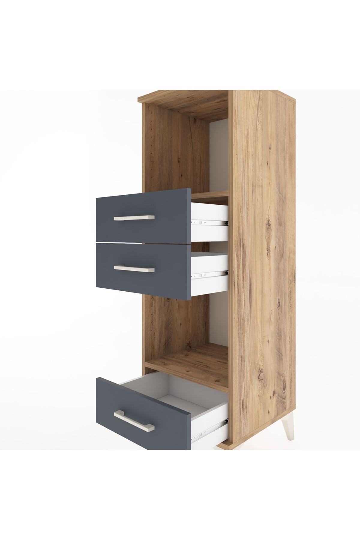 Hyperion Dolap 2 Raflı 3 Çekmeceli 44x44x134 Çam-Antrasit
