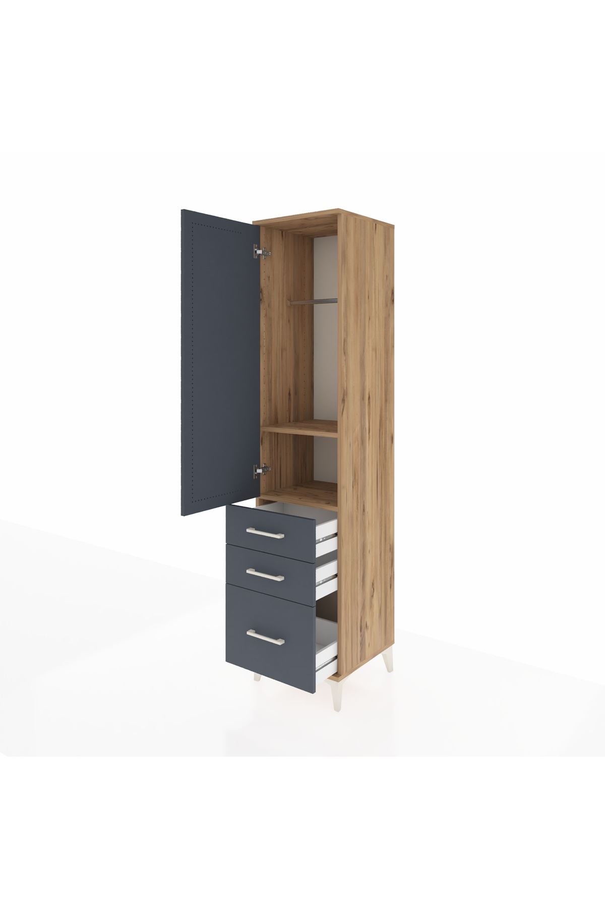 Hyperion Dolap 2 Raflı 3 Çekmeceli Tek Askılı 44x44x195 Çam-Antrasit