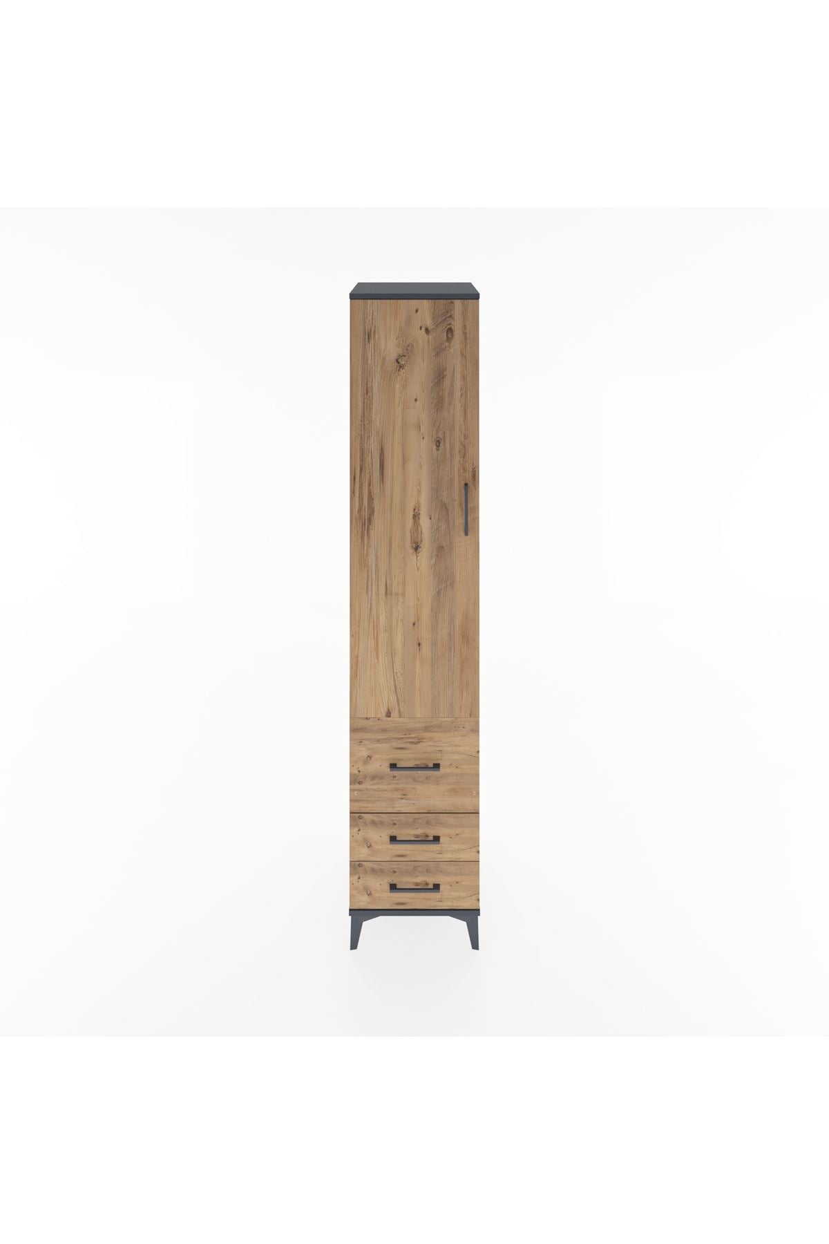 Hyperion Dolap 2 Raflı 3 Çekmeceli Tek Askılı 44x44x221 Antrasit-Çam