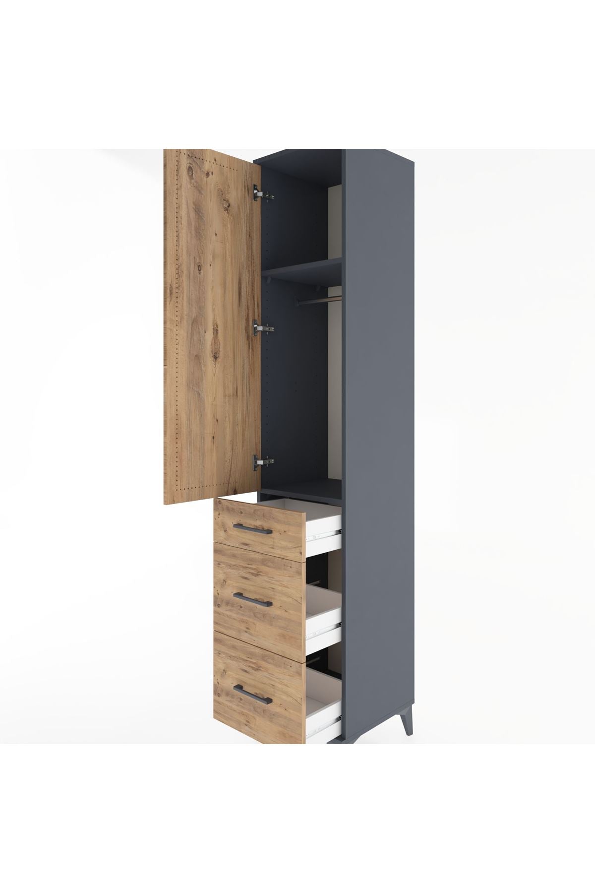 Hyperion Dolap 2 Raflı 3 Çekmeceli Tek Askılı 44x44x221 Antrasit-Çam