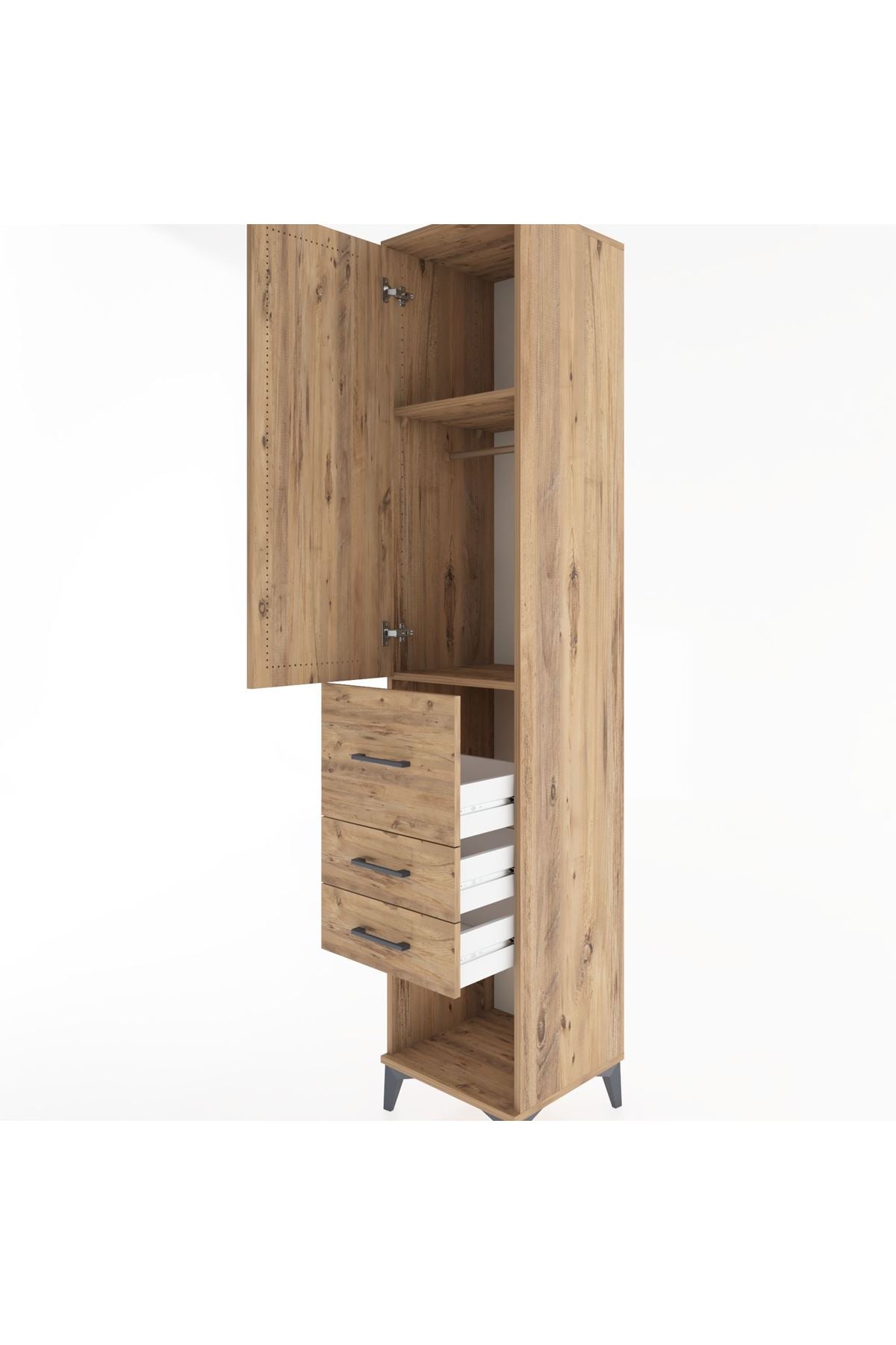 Hyperion Dolap 2 Raflı 3 Çekmeceli Tek Askılı 44x44x221 Çam-Çam