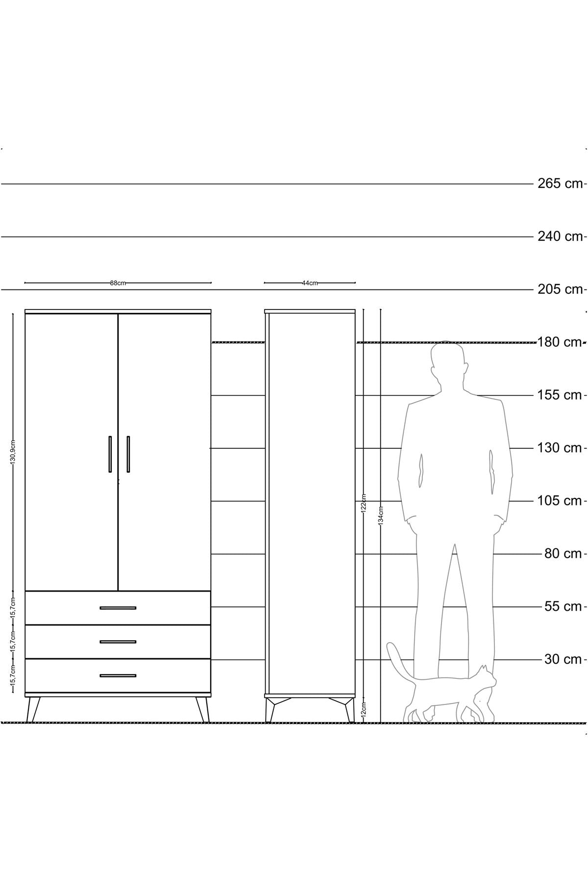 Hyperion Dolap 2 Raflı 3 Çekmeceli Tek Askılı 88x44x195 Antrasit-Aytaşı