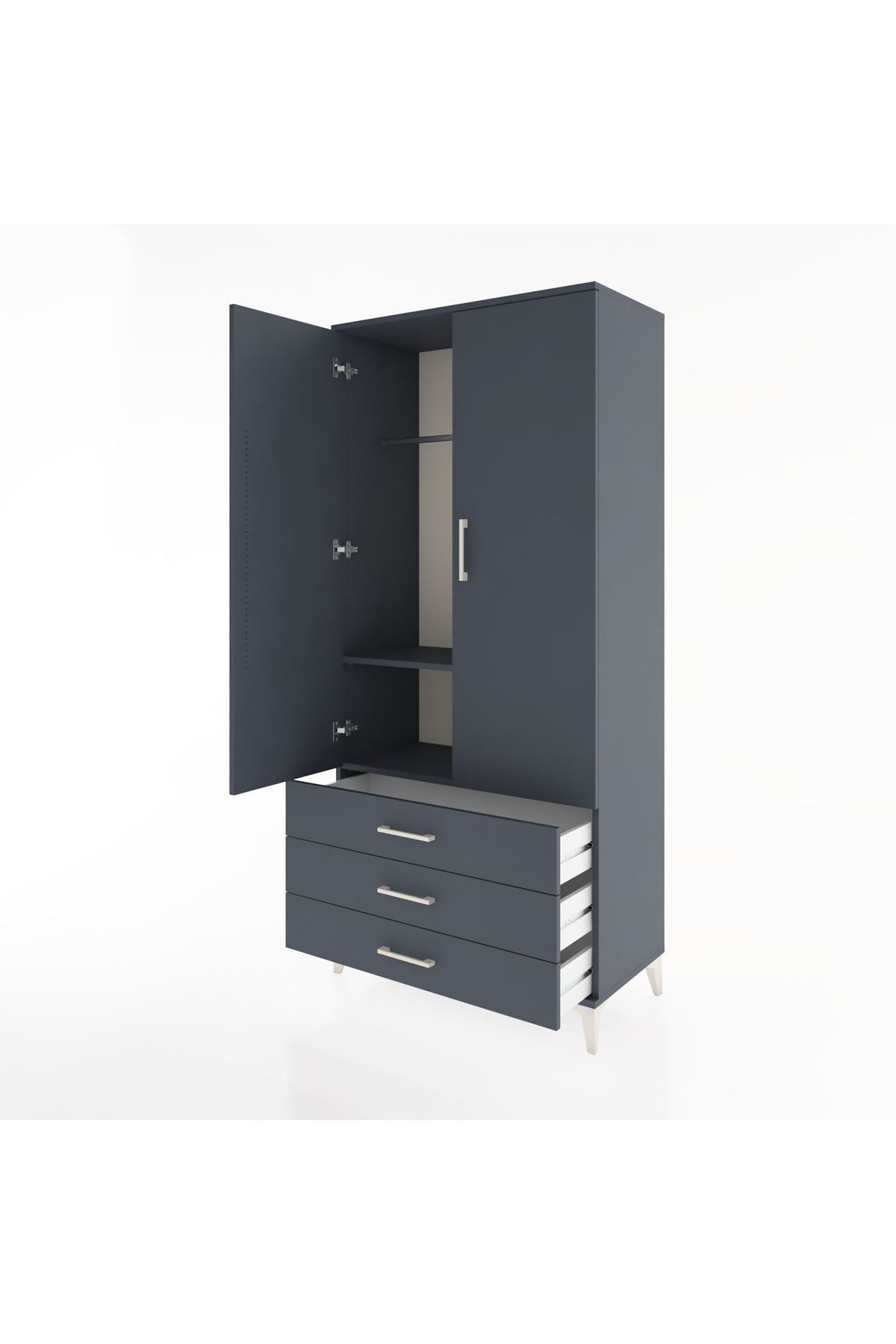 Hyperion Dolap 2 Raflı 3 Çekmeceli Tek Askılı 88x44x195 Antrasit-Antrasit