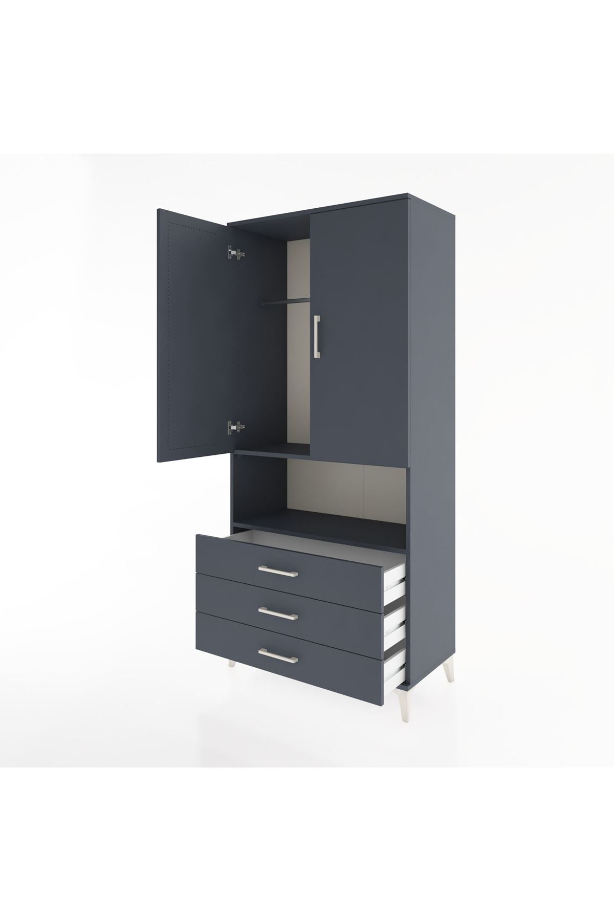 Hyperion Dolap 2 Raflı 3 Çekmeceli Tek Askılı 88x44x195 Antrasit-Antrasit
