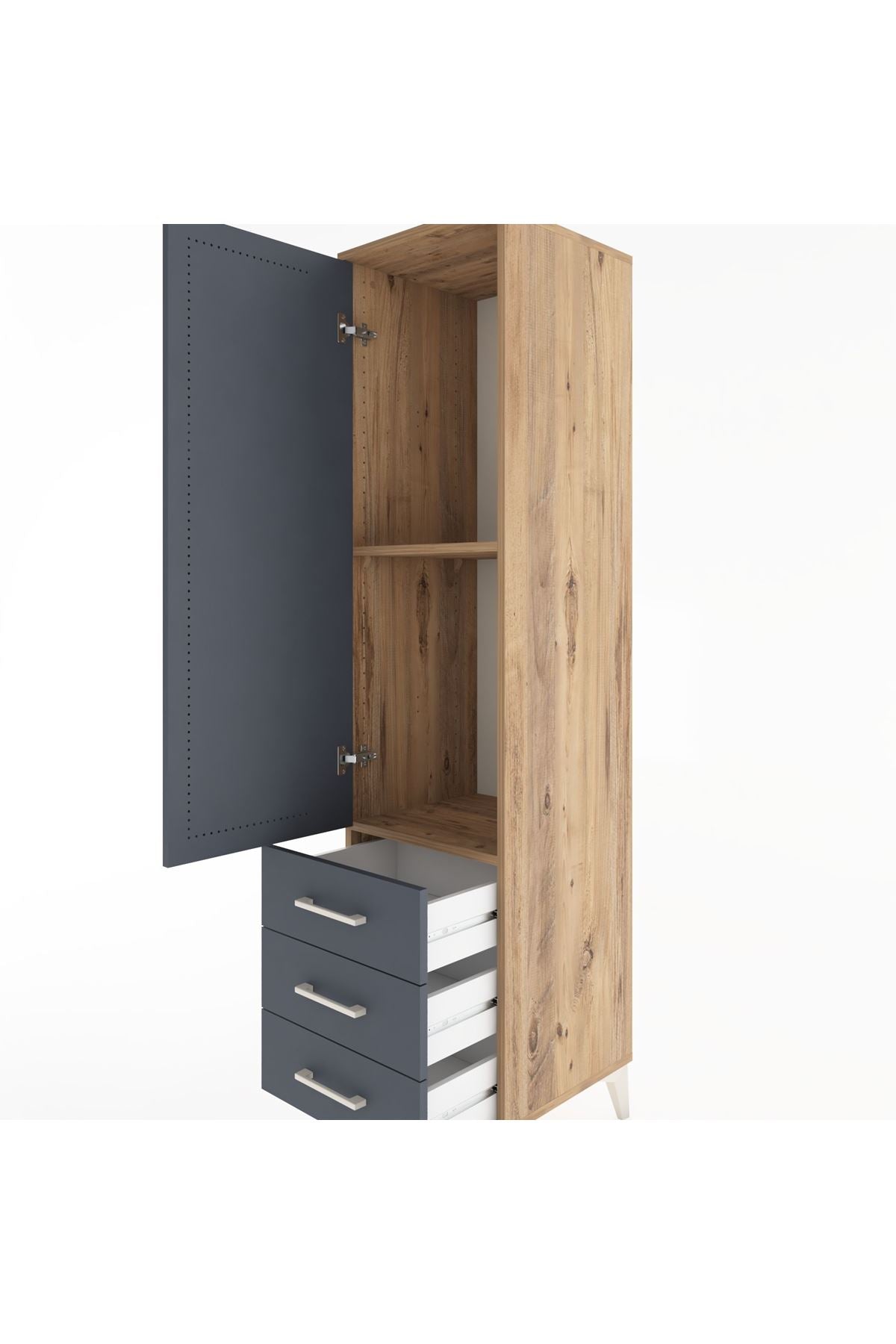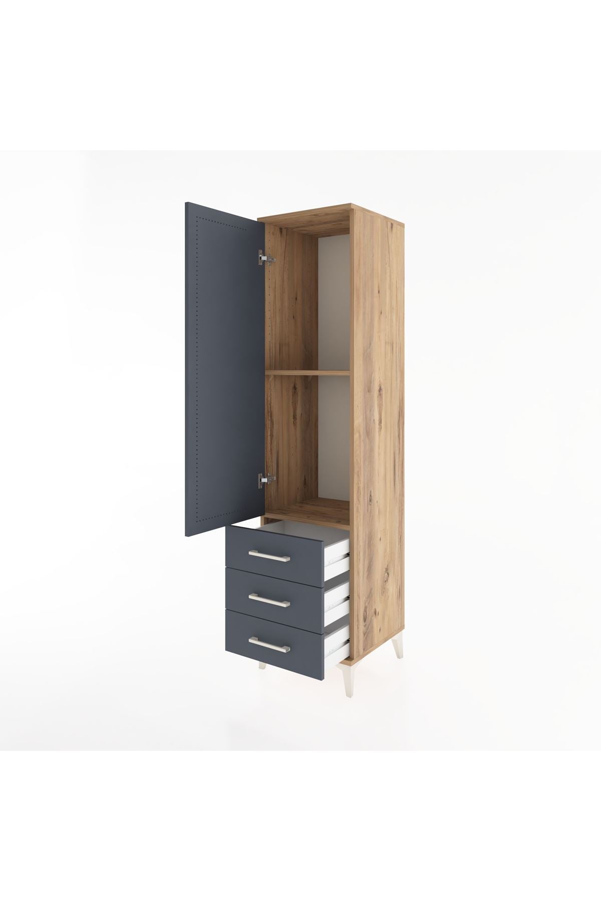 Hyperion Dolap 2 Raflı 3 Çekmeceli Tek Kapaklı 44x44x182 Çam-Antrasit
