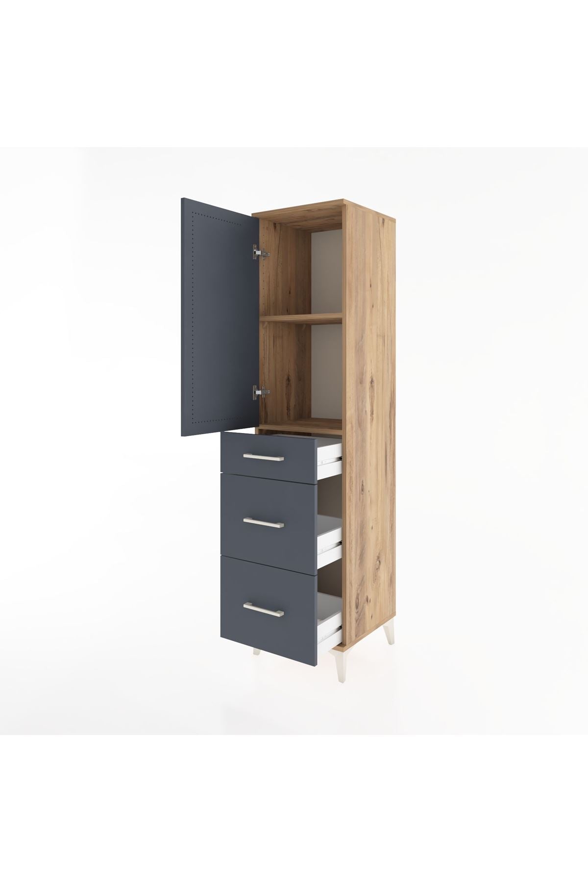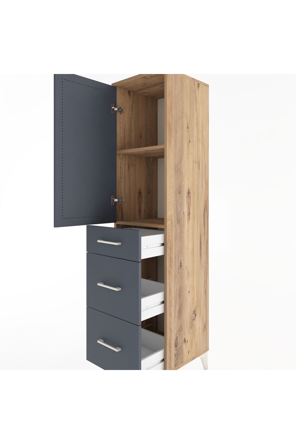 Hyperion Dolap 2 Raflı 3 Çekmeceli Tek Kapaklı 44x44x182 Çam-Antrasit