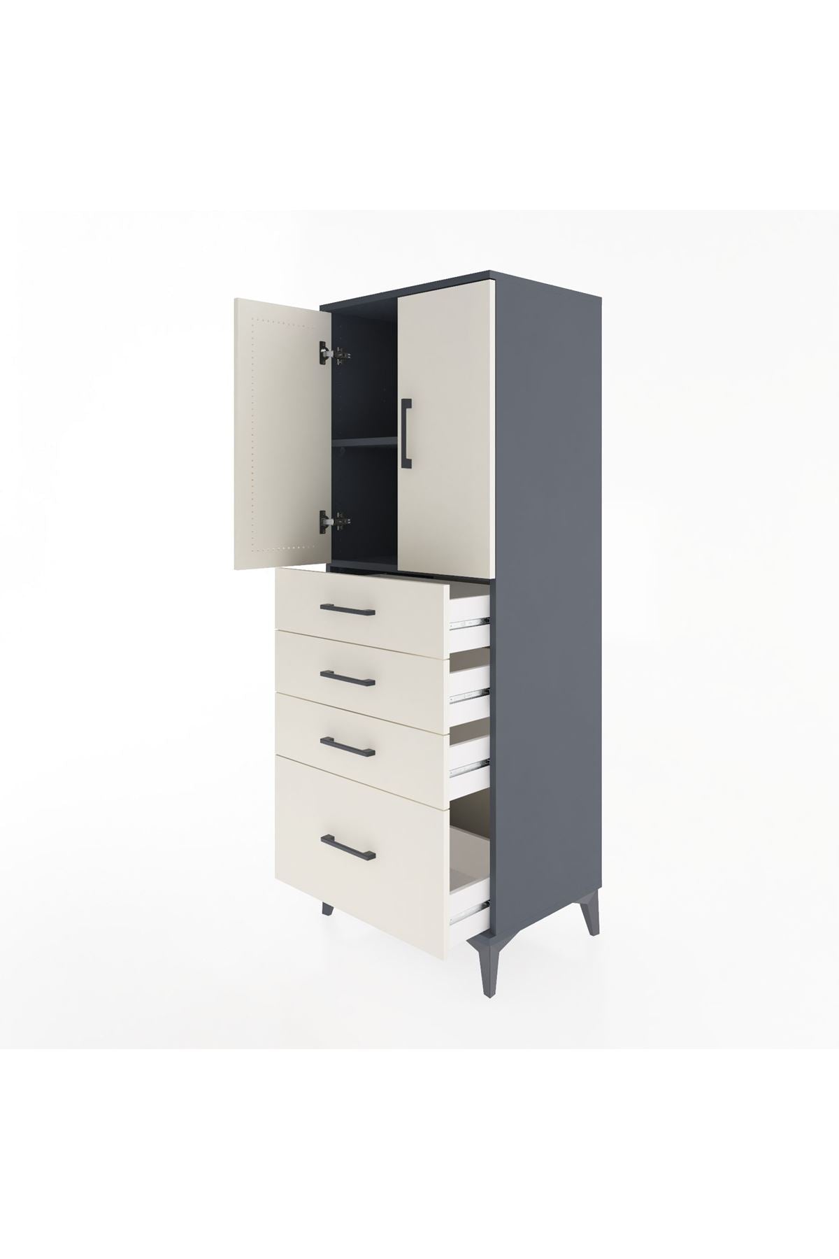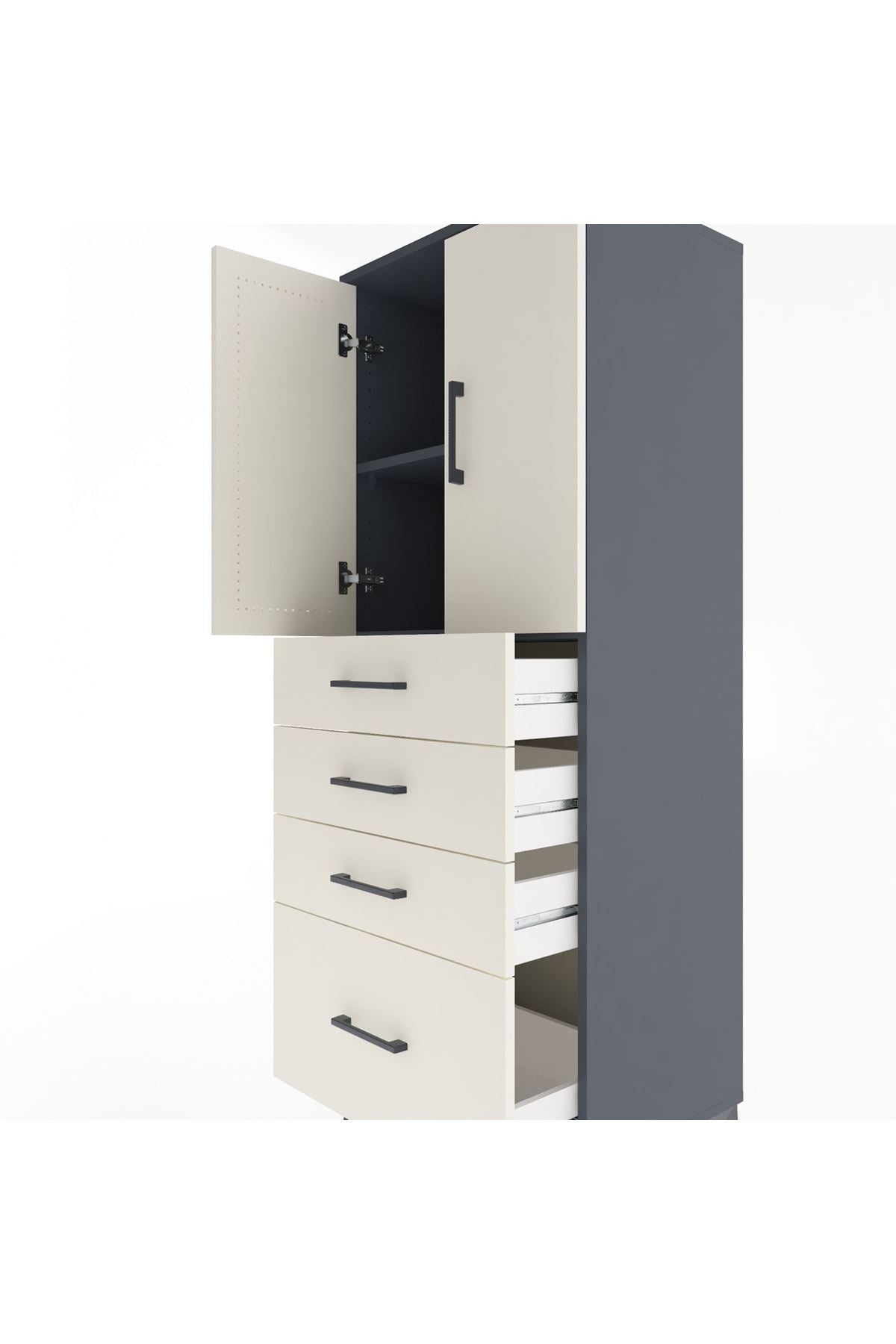 Hyperion Dolap 2 Raflı 4 Çekmeceli 2 Kapaklı 60x44x163 Antrasit-Aytaşı