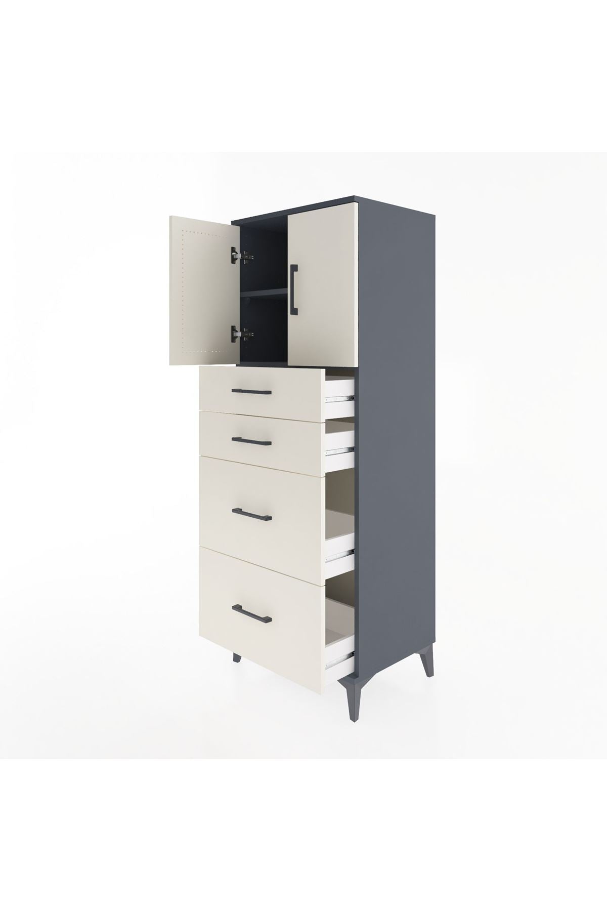 Hyperion Dolap 2 Raflı 4 Çekmeceli 2 Kapaklı 60x44x163 Antrasit-Aytaşı