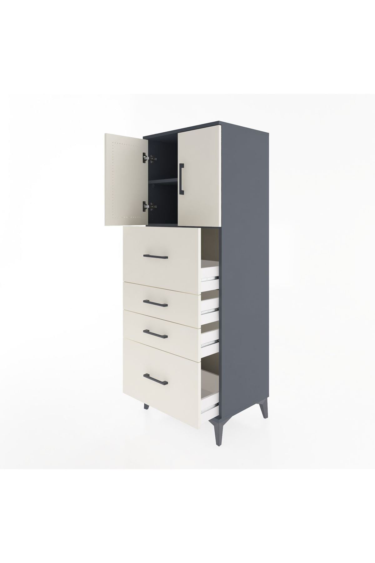Hyperion Dolap 2 Raflı 4 Çekmeceli 2 Kapaklı 60x44x163 Antrasit-Aytaşı