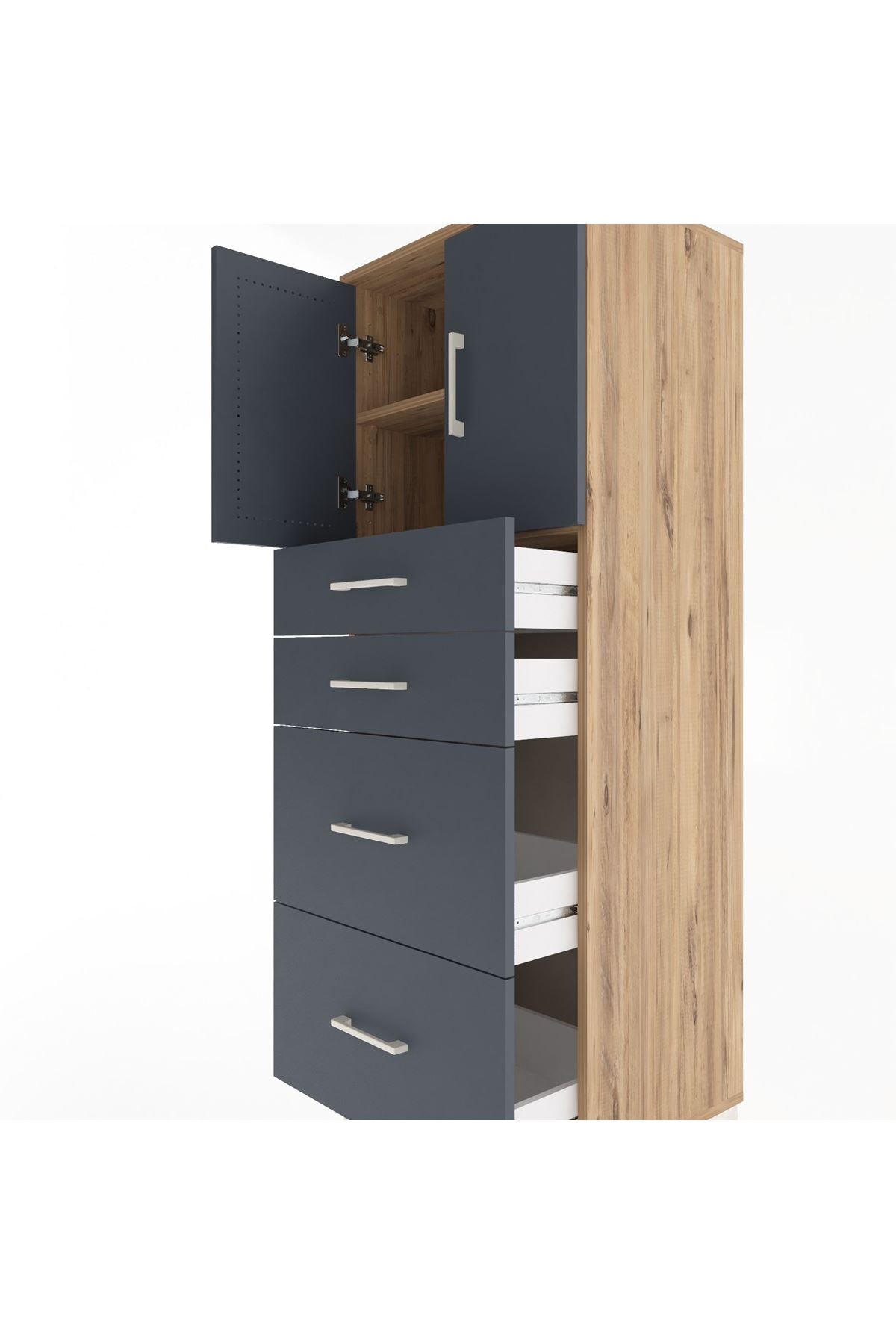 Hyperion Dolap 2 Raflı 4 Çekmeceli 2 Kapaklı 60x44x163 Çam-Antrasit