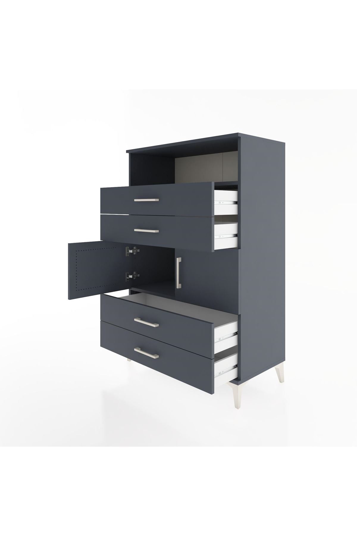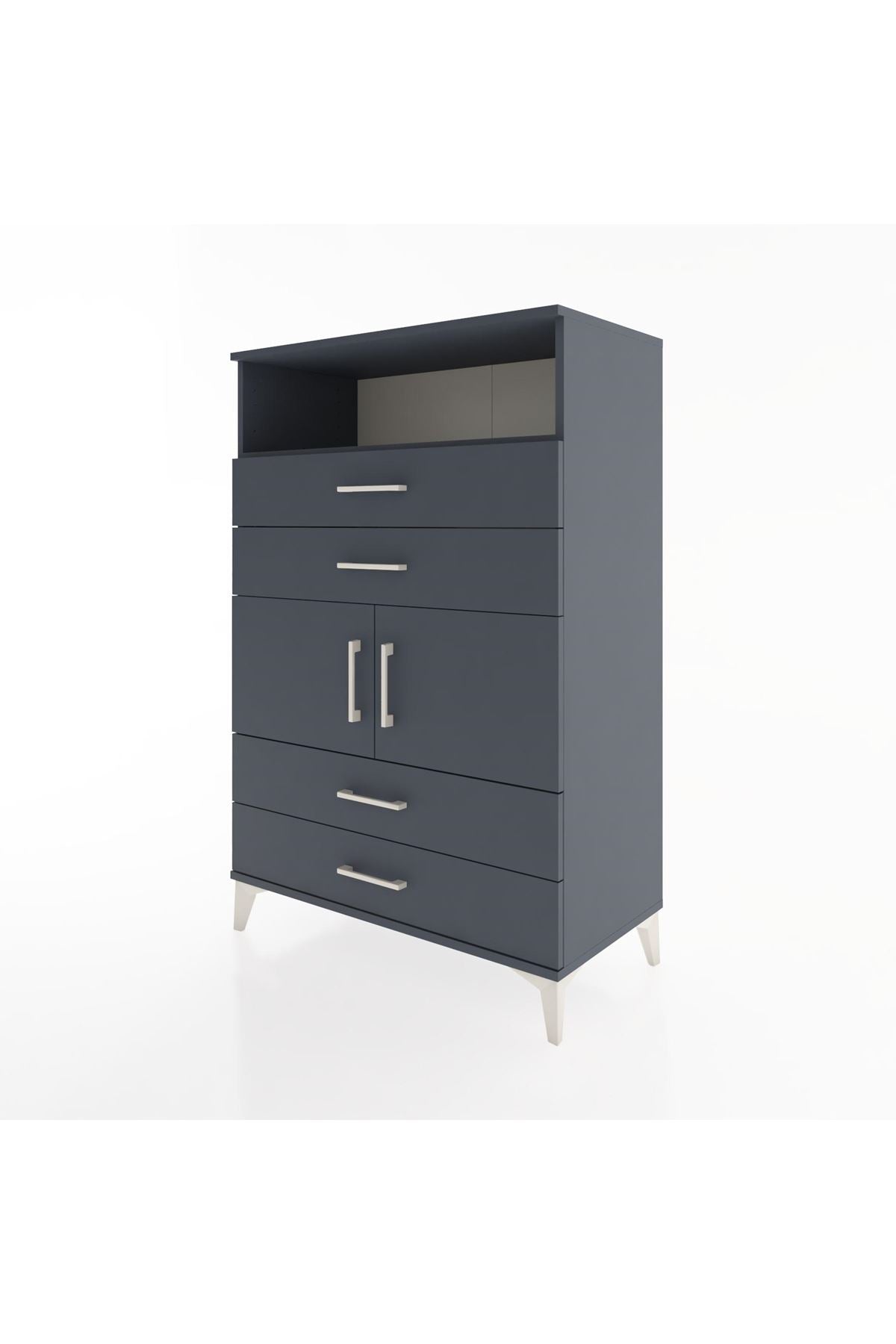Hyperion Dolap 2 Raflı 4 Çekmeceli 2 Kapaklı 88x44x134 Antrasit-Antrasit