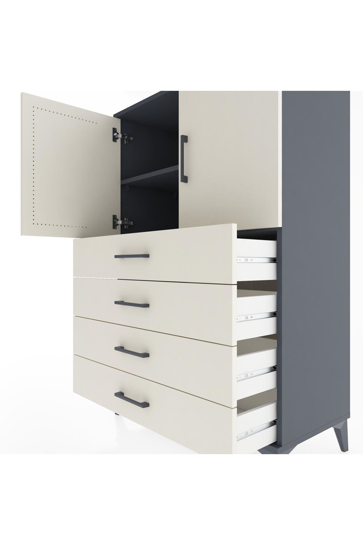 Hyperion Dolap 2 Raflı 4 Çekmeceli 2 Kapaklı 88x44x134 Antrasit-Aytaşı