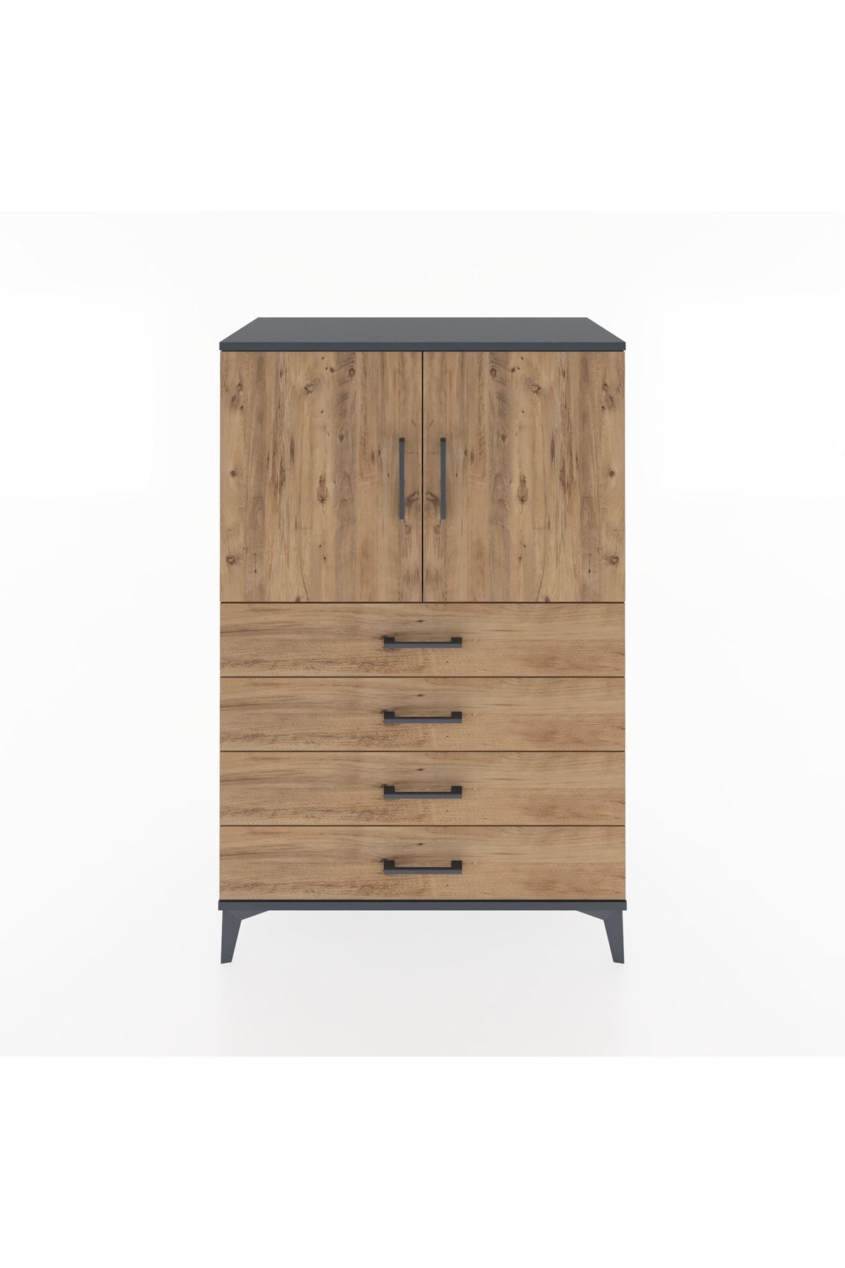 Hyperion Dolap 2 Raflı 4 Çekmeceli 2 Kapaklı 88x44x134 Antrasit-Çam