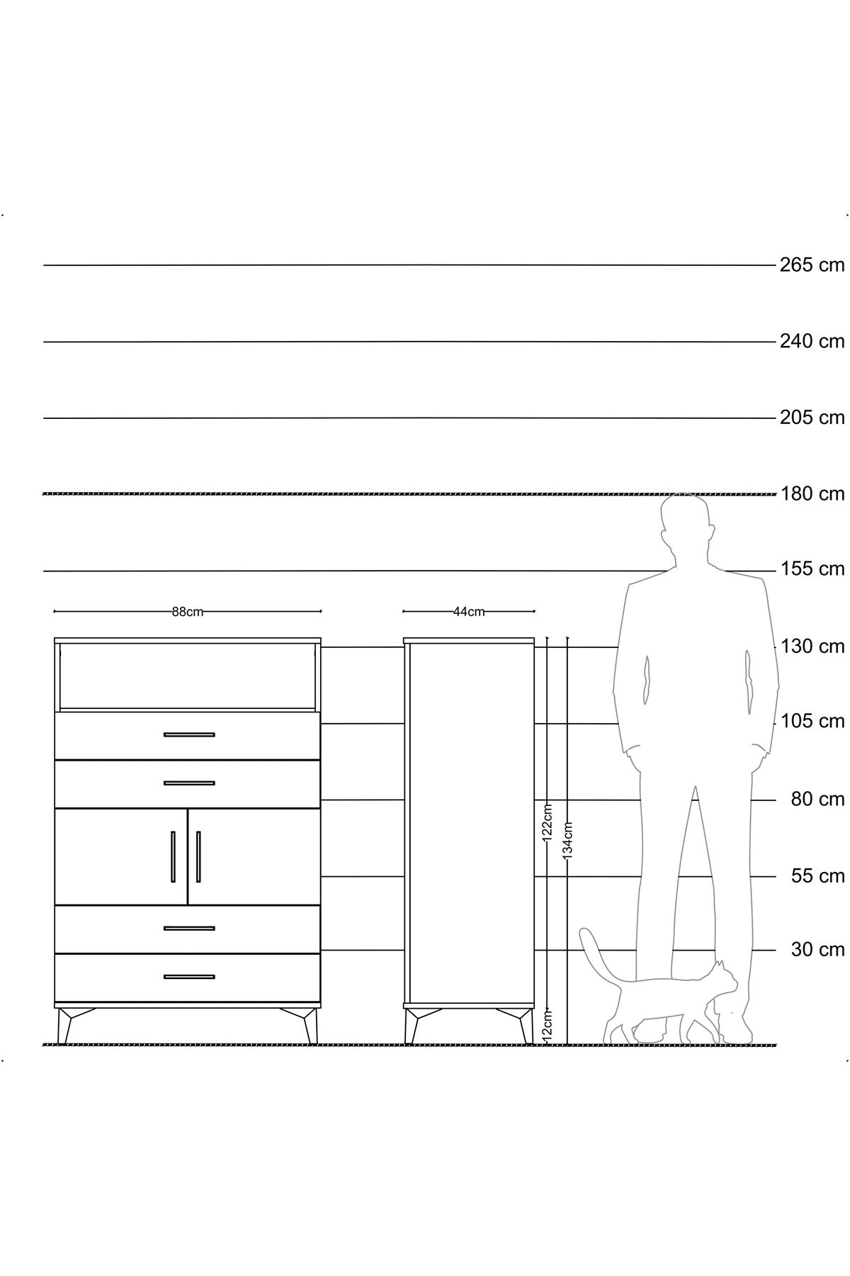 Hyperion Dolap 2 Raflı 4 Çekmeceli 2 Kapaklı 88x44x134 Aytaşı-Antrasit