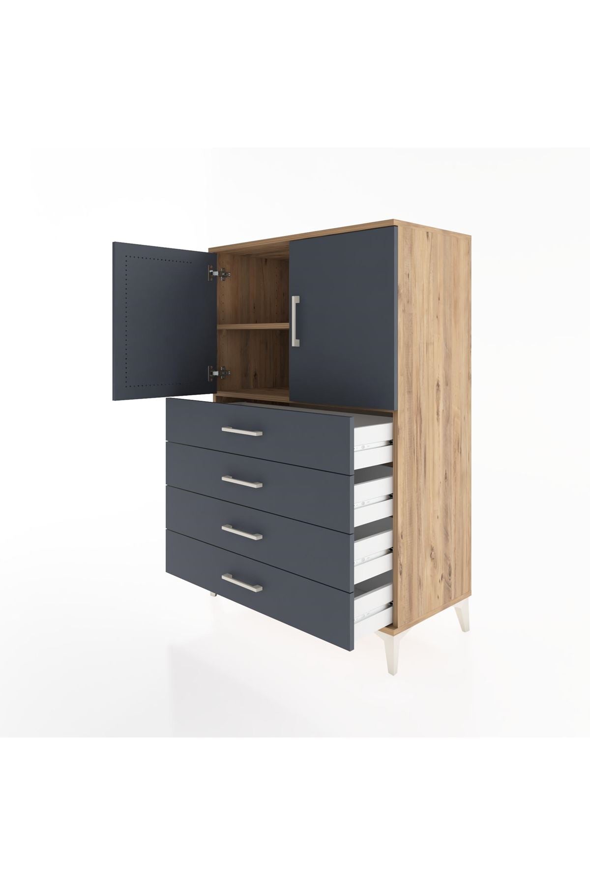 Hyperion Dolap 2 Raflı 4 Çekmeceli 2 Kapaklı 88x44x134 Çam-Antrasit