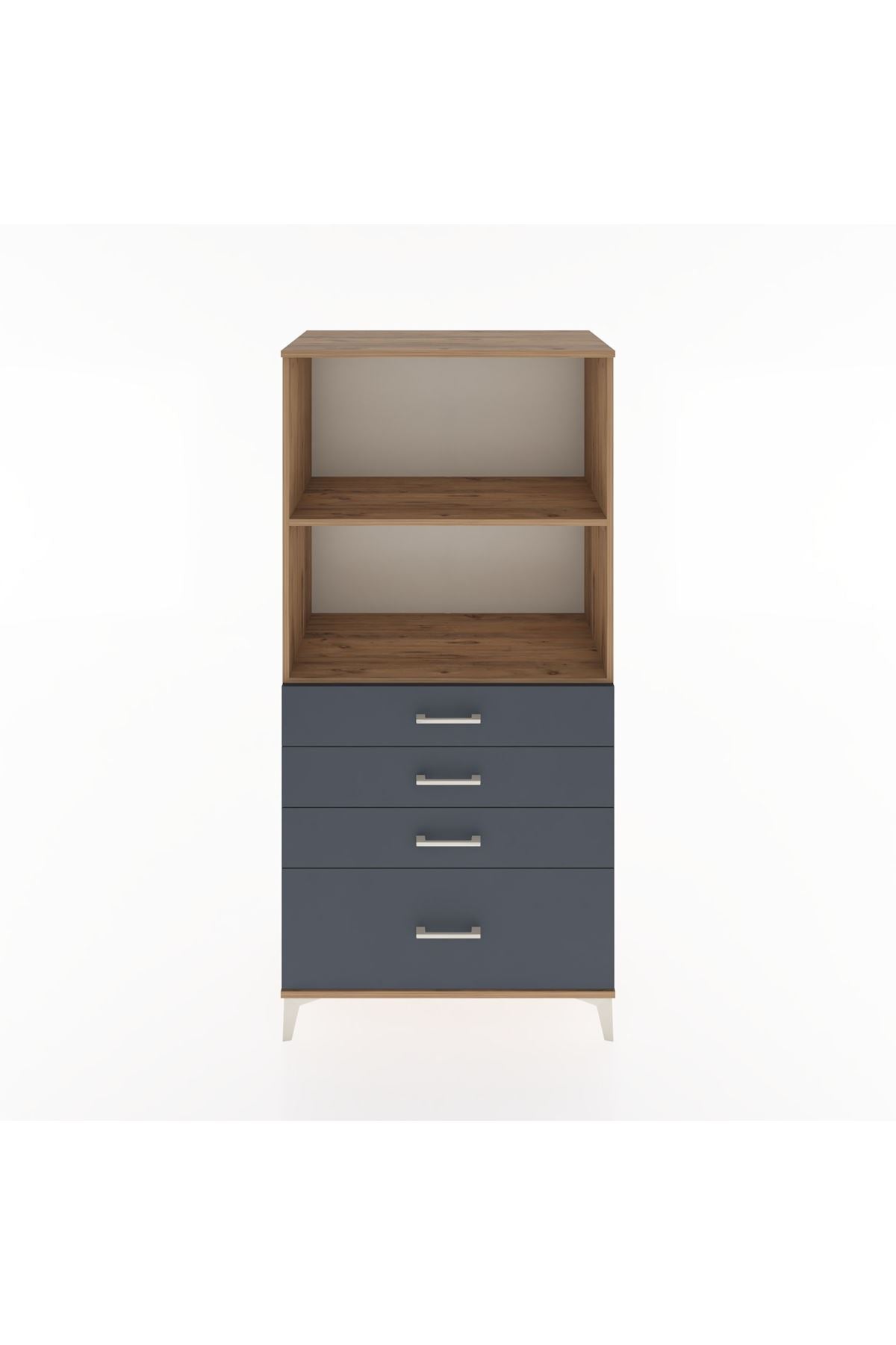 Hyperion Dolap 2 Raflı 4 Çekmeceli 88x44x182 Çam-Antrasit