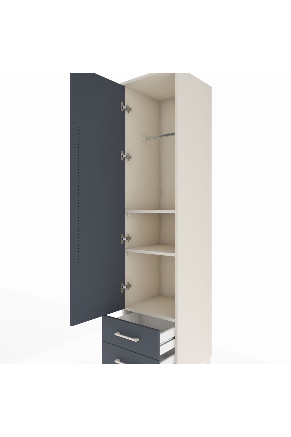 Hyperion Dolap 3 Raflı 2 Çekmeceli Tek Askılı 44x44x195 Aytaşı-Antrasit